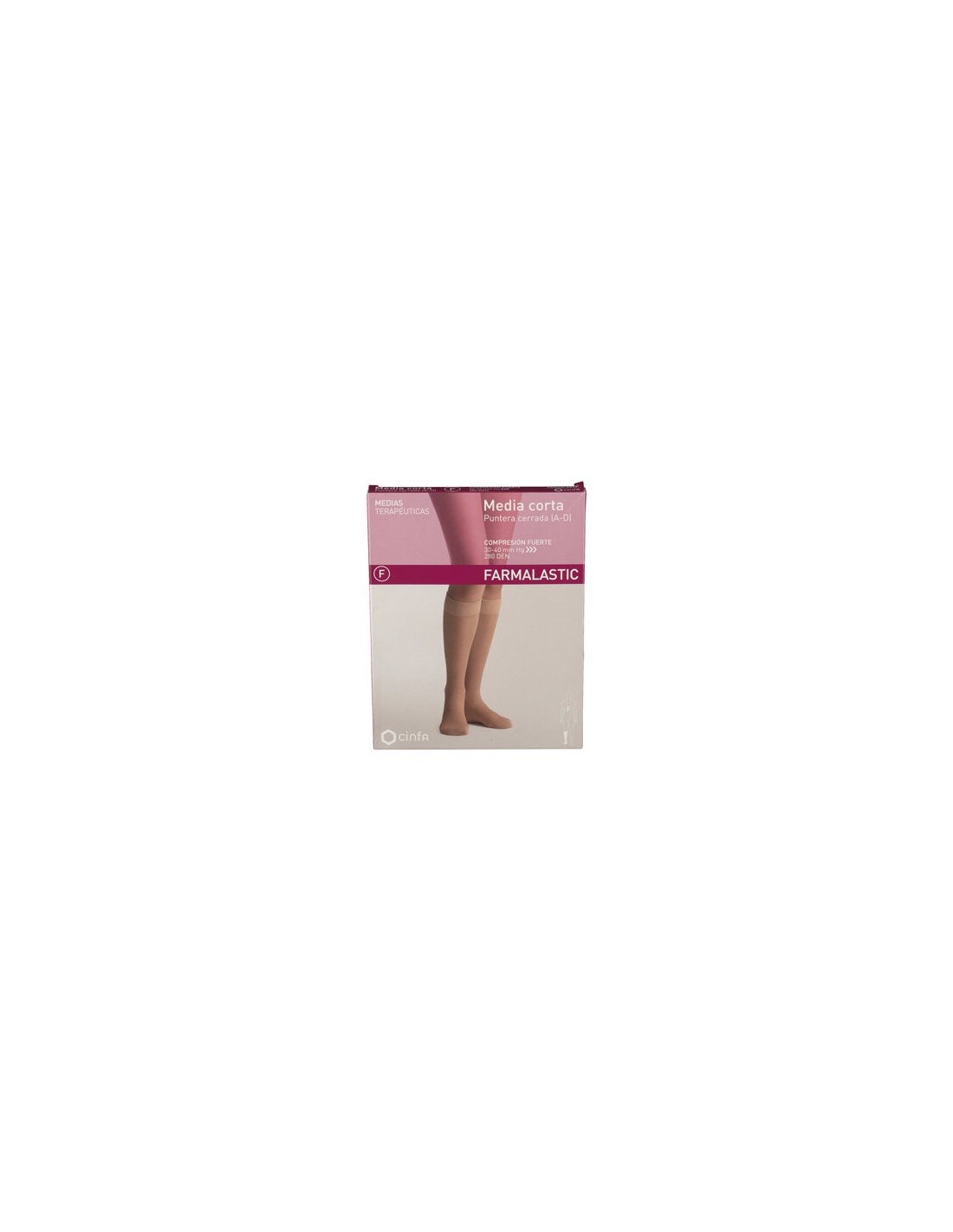 La Media Corta Farmalastic Fuerte en color beige es un producto terapéutico que brinda alivio a las piernas y tobillos con problemas de insuficiencia venosa, edema, varicosis secundaria y úlceras venosas. Su compresión fuerte de 280 DEN mejora la circulación y previene complicaciones. Con una puntera cerrada, se adapta cómodamente. Se recomienda lavar a mano con jabón neutro y agua templada, evitando calor y sol al secar. Para un cuidado adecuado, se deben evitar cremas y aceites.