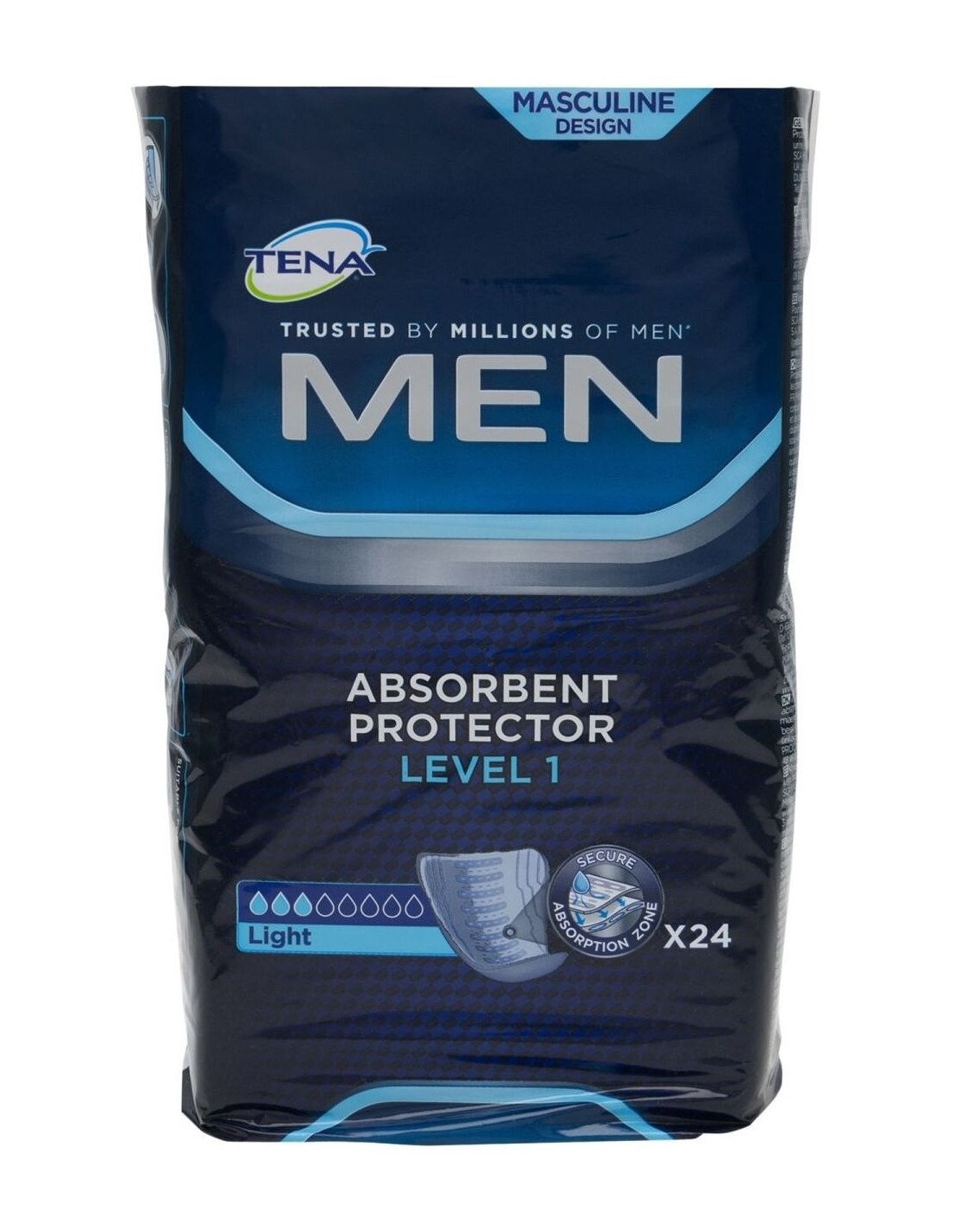 Especialmente diseñado para adaptarse a la anatomía masculina Ajuste extrafino y seguro Núcleo absorbente seguro que bloquea el goteo leve y de urgencia Level 1: Absorbente fino y seguro con absorción ligera.