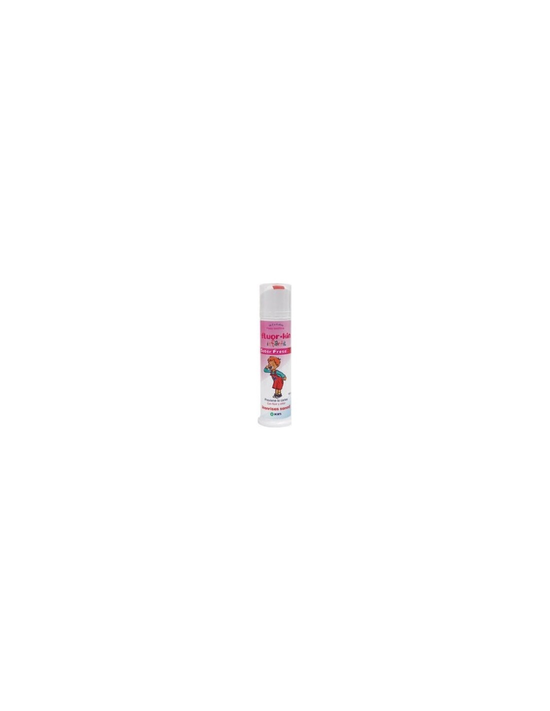 Fluor-Kin Infantil dentífrico fresa junta en un único producto todos los agentes anti-bacterianos del mejor dentífrico con un sabor especial que les encantará a los más peques.