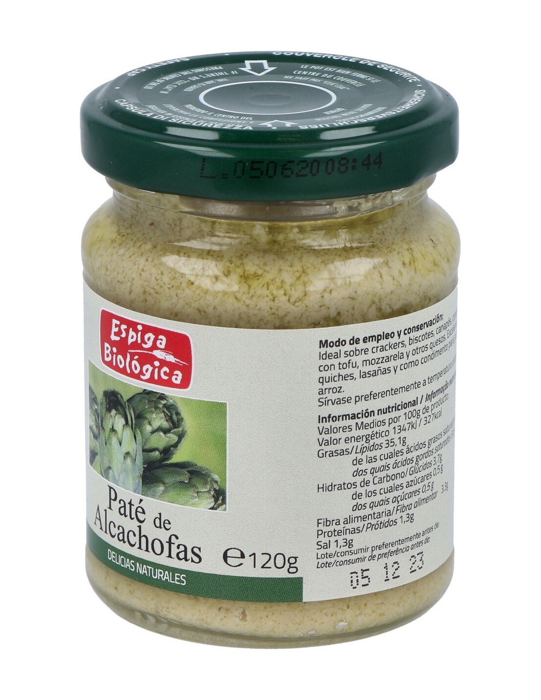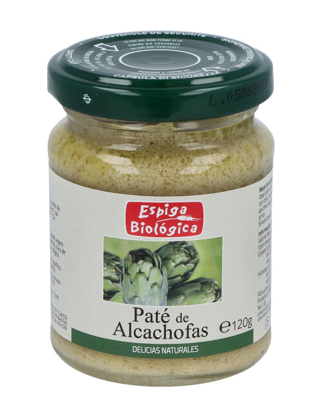 Delicado sabor a alcachofa con un toque de aroma a limón. Paté 100% vegetal y ecológico de agradable consistencia fina y cremosa y un sabor equilibrado. Sin gluten. Producto vegano.