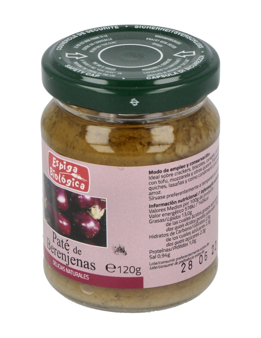 Paté 100% vegetal y ecológico de consistencia fina y cremosa. Sin gluten. Producto vegano.PATE DE BERENJENAS 120gr. ECO SG VEGAN de ESPIGA BIOLOGICA