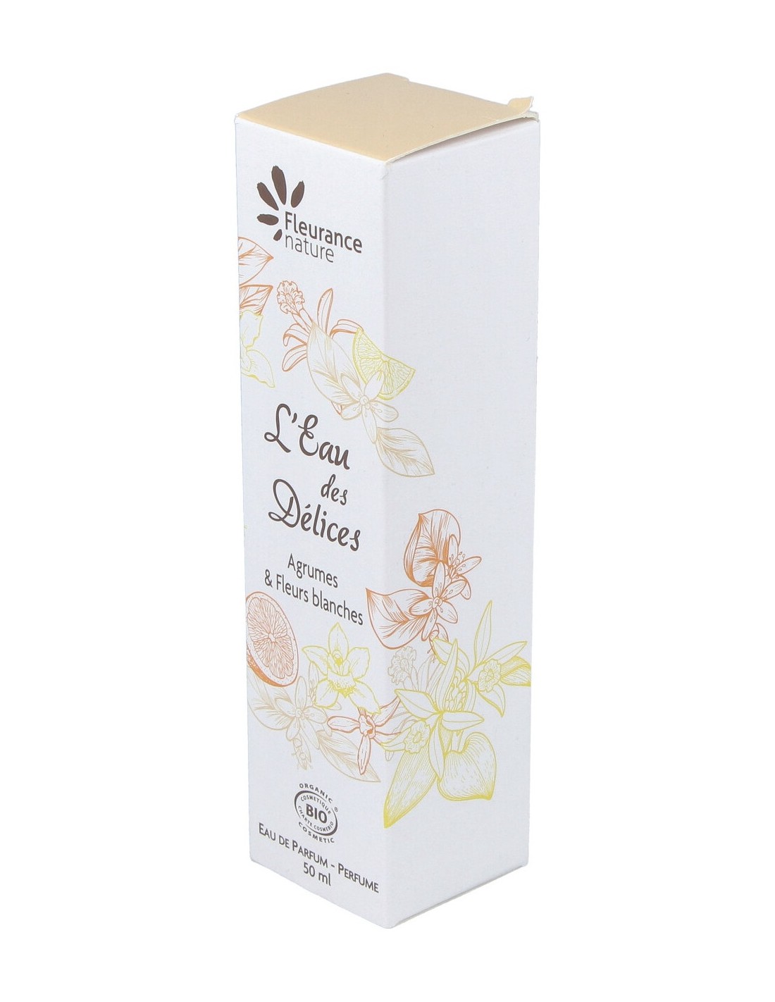Eau de parfum con carácter femenino, elaborado con productos cosméticos de origen ecológico. Fragancia muy dulce, con aromas acidulados. Contiene aromas suavemente regresivos evocan un hermoso paseo en un día soleado en un magnífico jardín desbordante de cítricos y flores blancas. Un auténtico llamamiento a la delicadeza y a la feminidad. Notas de salida: mandarina, naranja amarga e ylang-ylang. Notas de corazón: sampaguita, azahar y lirio. Notas de fondo: pachulí, ámbar y vainilla.