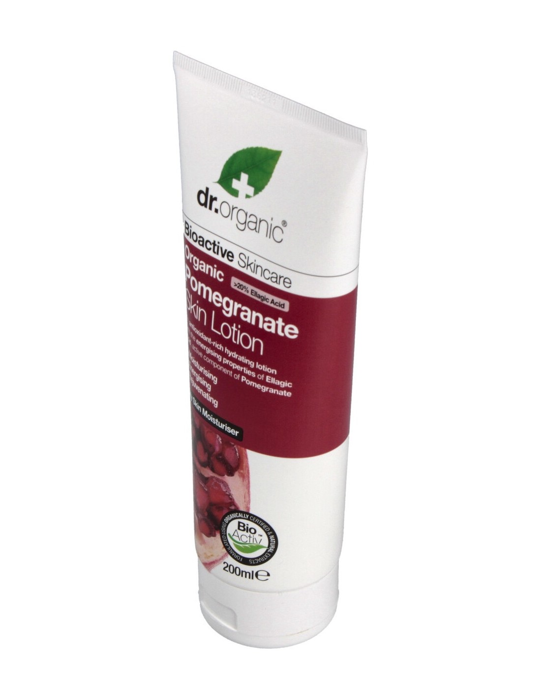 Dr Organic Loción corporal Granada orgánica 200ml es rica en antioxidantes, principalmente ácido elágico y omega 5. Enriquecida con aloe vera, manteca de cacao, manteca de karité, aceite de oliva, aceite de girasol, extracto de manzana y vitamina E. Ayuda a prevenir el envejecimiento prematuro y promueve la elasticidad de la piel. Revitaliza, rejuvenece y suaviza.