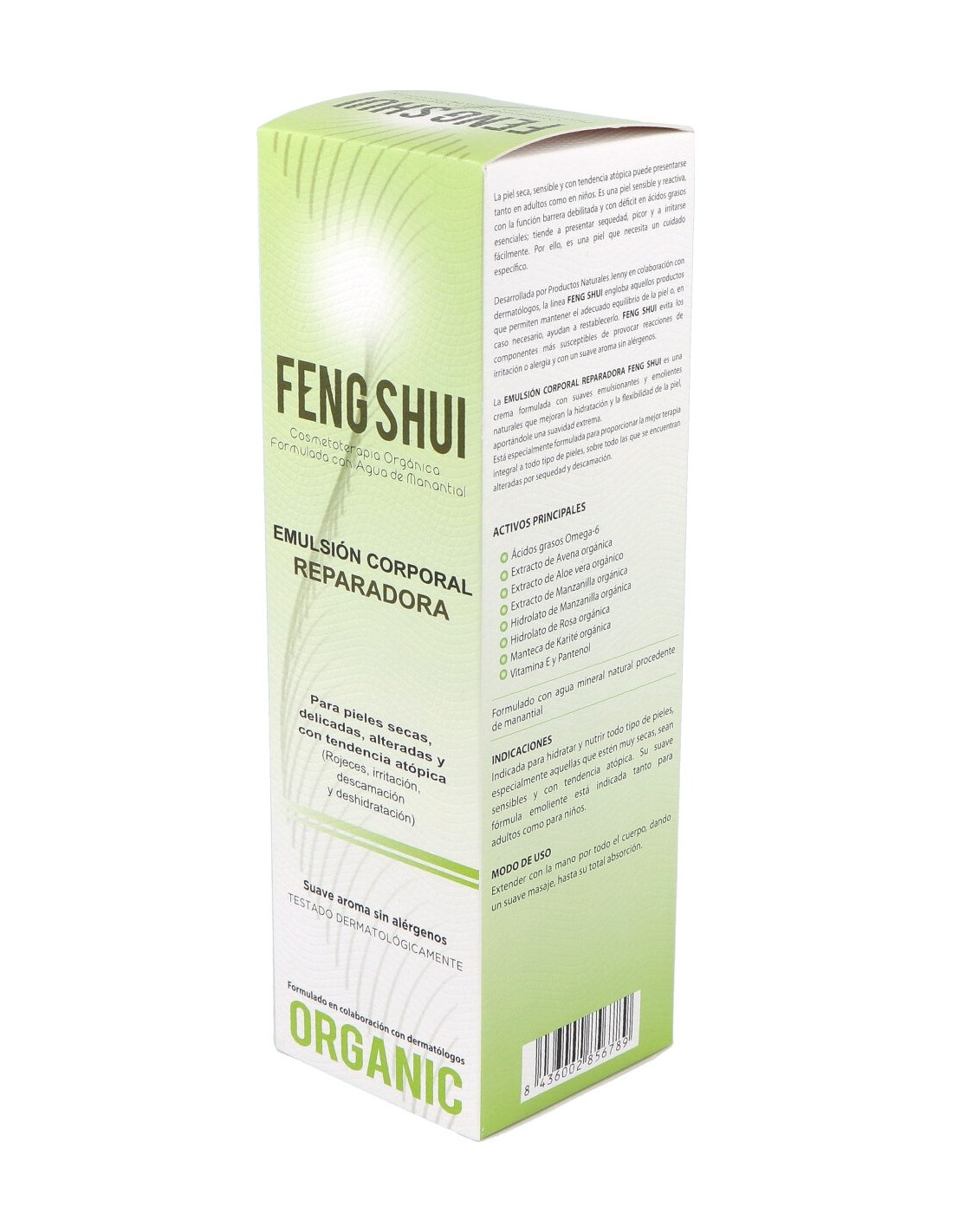 La emulsión corporal reparadora de Feng Shui es una emulsión suave que ayuda a hidratar intensamente la piel, reparando las zonas irritadas o enrojecidas. Indicada para pieles sensibles, con problemas de sequedad o atópicas, es un tratamiento especialmente humectante y rica en lípidos fisiológicos.