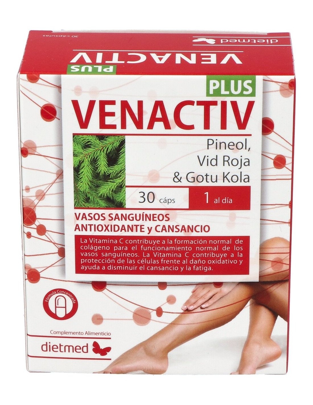 Indicado en caso de piernas pesadas y cansadas, insuficiencia venosa, en los casos en que es necesario mejorar la circulación venosa como en la diabetes, tratamientos de varices o profesionales que pasan mucho tiempo en la misma posición. Tolerado por embarazadas.VENACTIV PLUS 30cap. de DIETMED