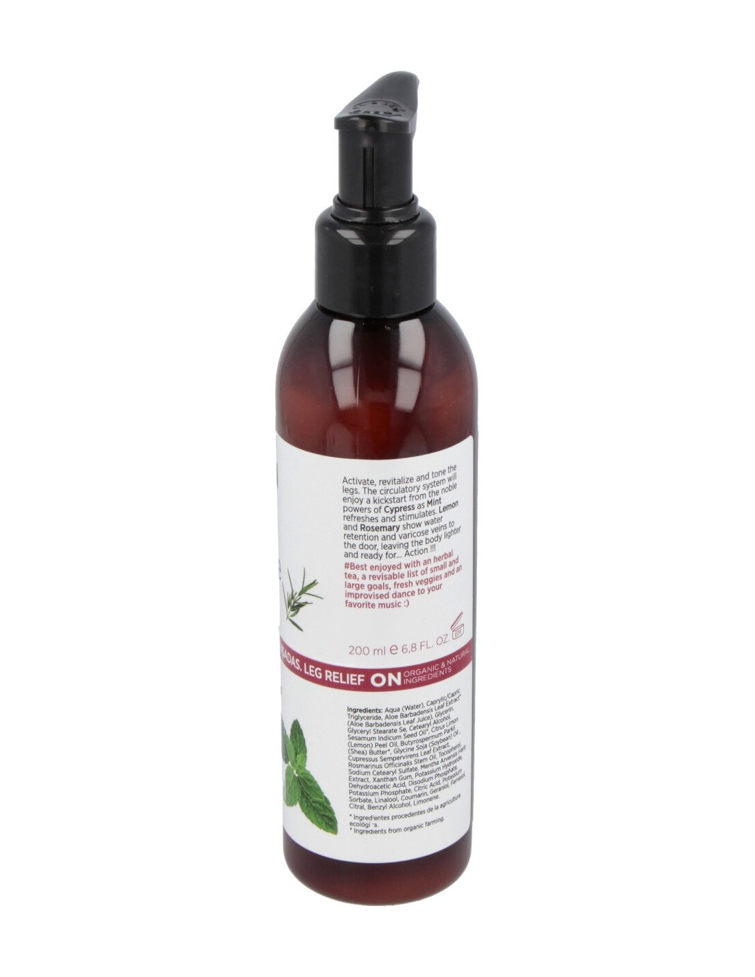 Alivia la pesadez de las piernas. Elaborada sobre una base de aloe vera ecológico, glicerina vegetal, manteca de karité ecológica y aceite de sésamo ecológico.