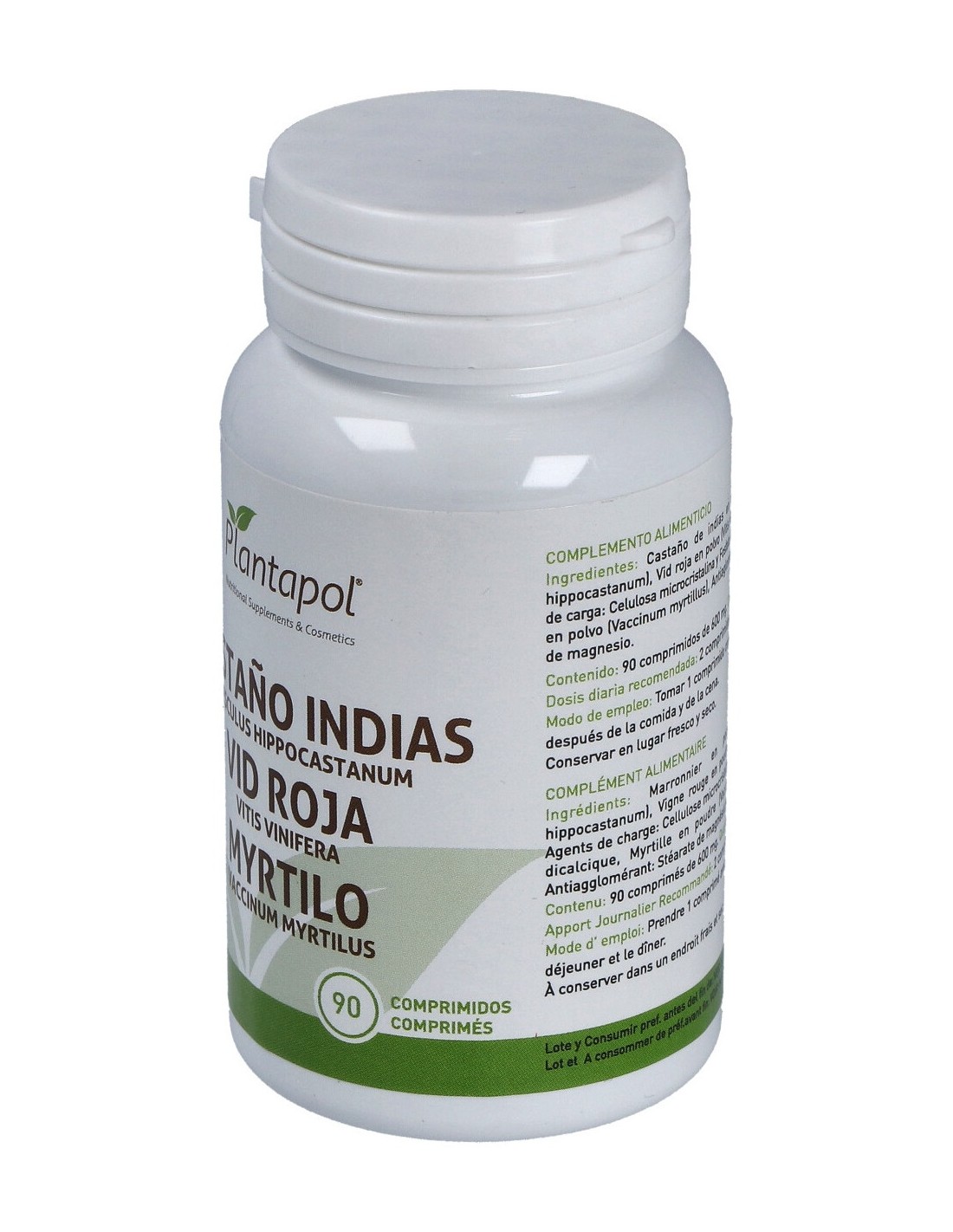 Castaño de indias en polvo, Vid roja en polvo, Mirtilo en polvo, Agentes de carga: Celulosa microcristalina y Fosfato dicálcico, Antiaglomerante: Estearato de magnesio.