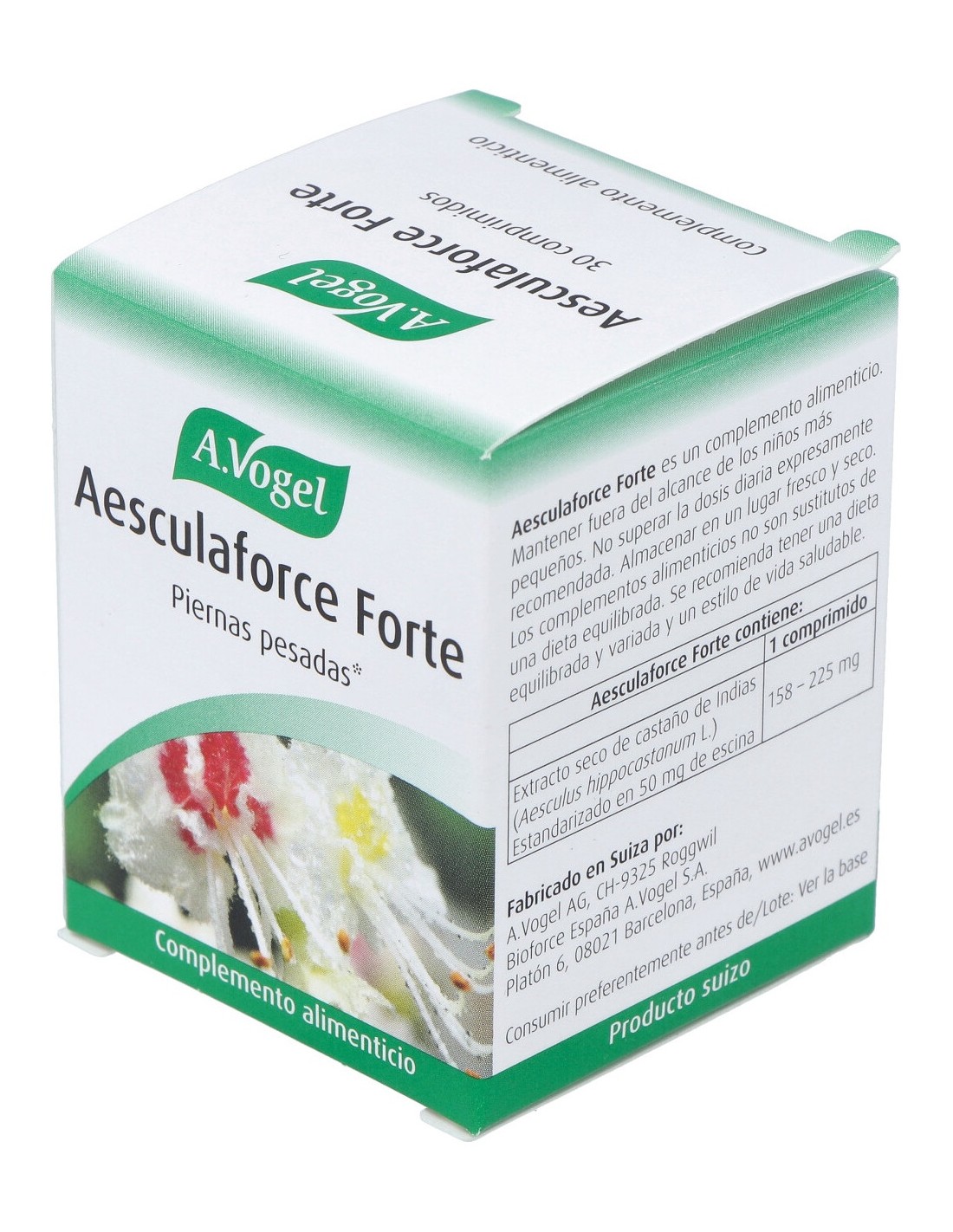 A. Vogel Aesculaforce Forte 30comp es un complemento alimenticio formulado a base de semillas de castaño de indias, conocido por sus altos beneficios para las afecciones venosas y el riego sanguíneo. Este producto mejora la circulación de la sangre y reduce la sensación de cansancio y fatiga de las piernas.
