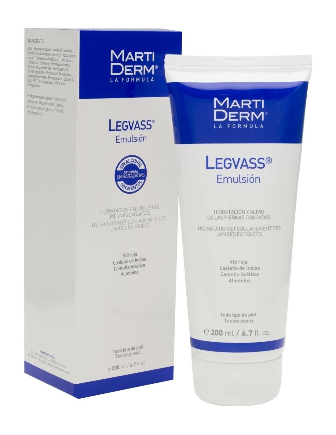 MARTIDERM® Legvass emulsión permite en un solo gesto darles a las piernas todo el cuidado que necesitan. Por un lado, estimula la circulación, al aplicarlo con un masaje que debe de ir desde abajo hacia arriba para activar el retorno sanguíneo. Por otro, cuida la piel y le ofrece hidratación y frescor para un mayor descanso.