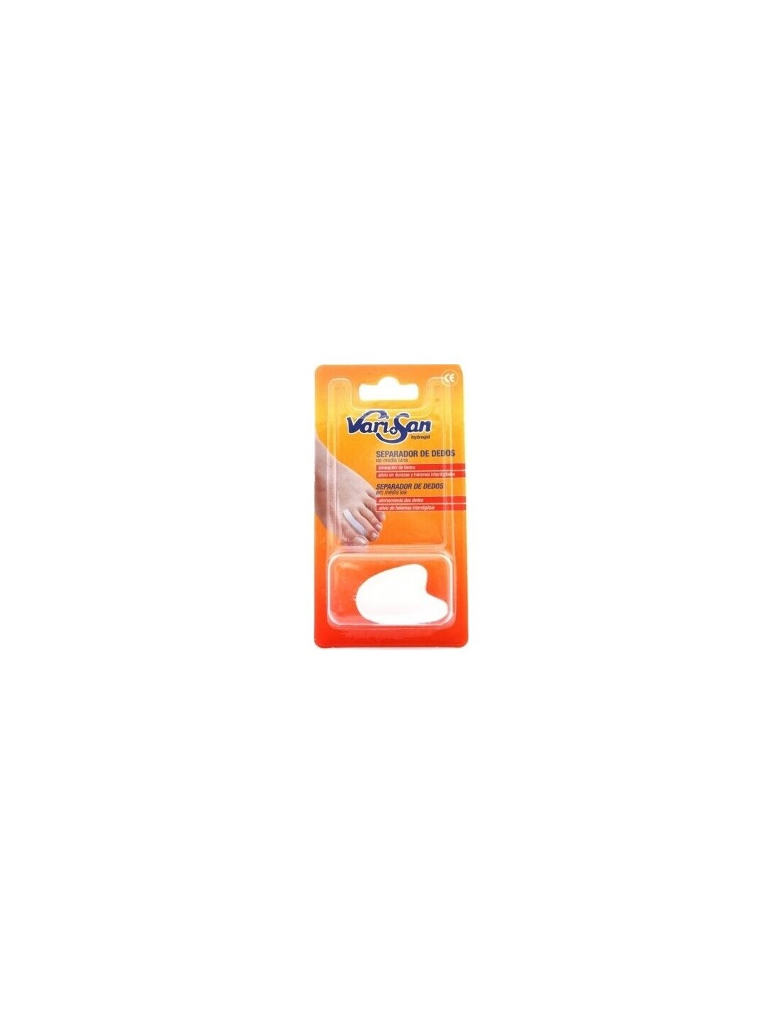 Este producto consiste en una media luna de hidrogel que con una capacidad adhesiva consigue mantenerse en la zona afectada del pie entre los dedos para que el hidrogel proporcione una protección contra las molestias evitando sobre todo la ficción y las rozaduras. Para su aplicación tan solo hay que introducir Varisan entre los dedos donde se esté sufriendo molestias y asegurar que se adhiere a dicha zona.