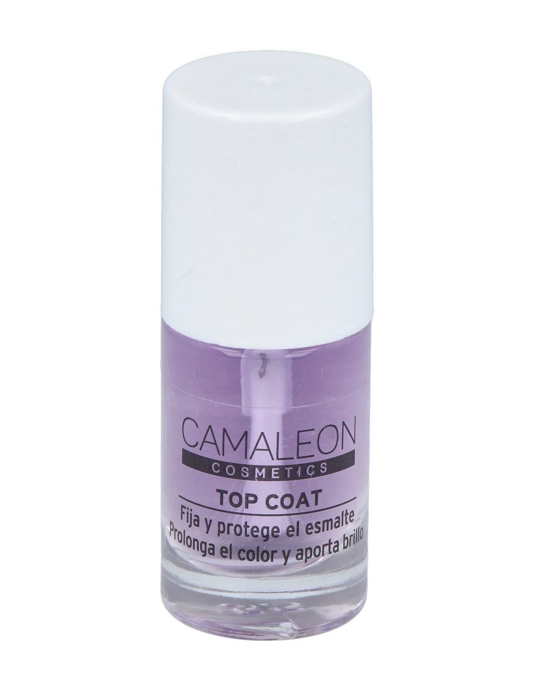 Este producto es de la marca Camaleon. Es un esmalte de color transparente que se utiliza para fijar el color de uñas previamente aplicado. Tiene un acabado brillante para obtener un resultado de salón profesional en casa. Presenta la ventaja de secarse con rapidez, por lo tanto, es posible aplicar varias capas en poco tiempo. Es importante esperar a que seque muy bien una capa para poner la otra. Incluso el esmalte de color también debe estar completamente seco antes de aplicar este producto.