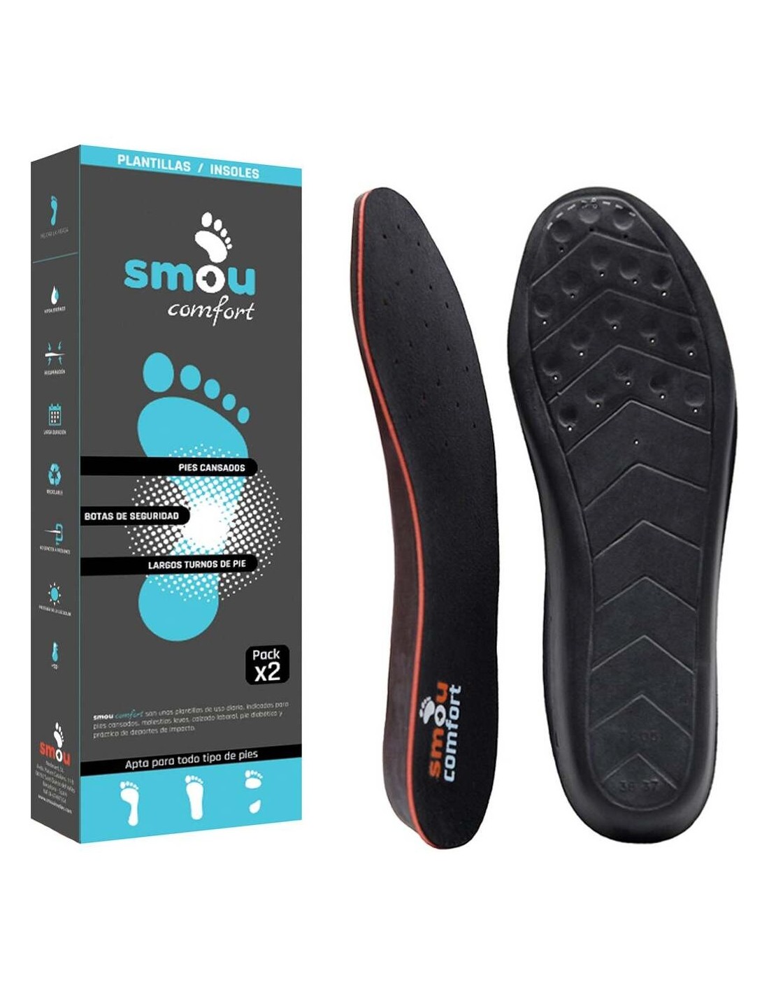 Plantilla para amortiguación y descarga. Apta para pìes cansados, botas de seguridad y largos turnos de pie, práctica de deportes de impacto, pie diabético y geriátrico. Tallaje grande. Confortable, transpirable, antideslizante, saludable.