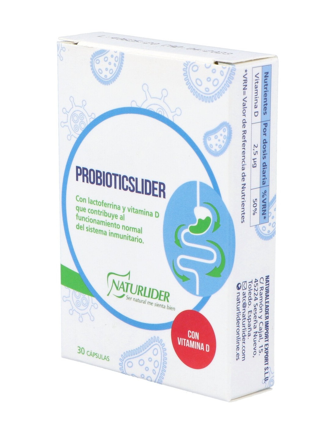Inulina (334 Mg), Fibra Prebiótica (334 Mg), Mezcla Probiótica Sin Lactosa (100 Mg), Mezcla Probiótica Lactosa (100 Mg), Lactoferrina (15 Mg), Vitamina D3 (1 Mg), Maltodextrina, Estearato De Magnesio, Bifidobacterium Lactis, Bifidobacterium Bifidum, Bifidobacterium Longum., Fructooligosacáridos.