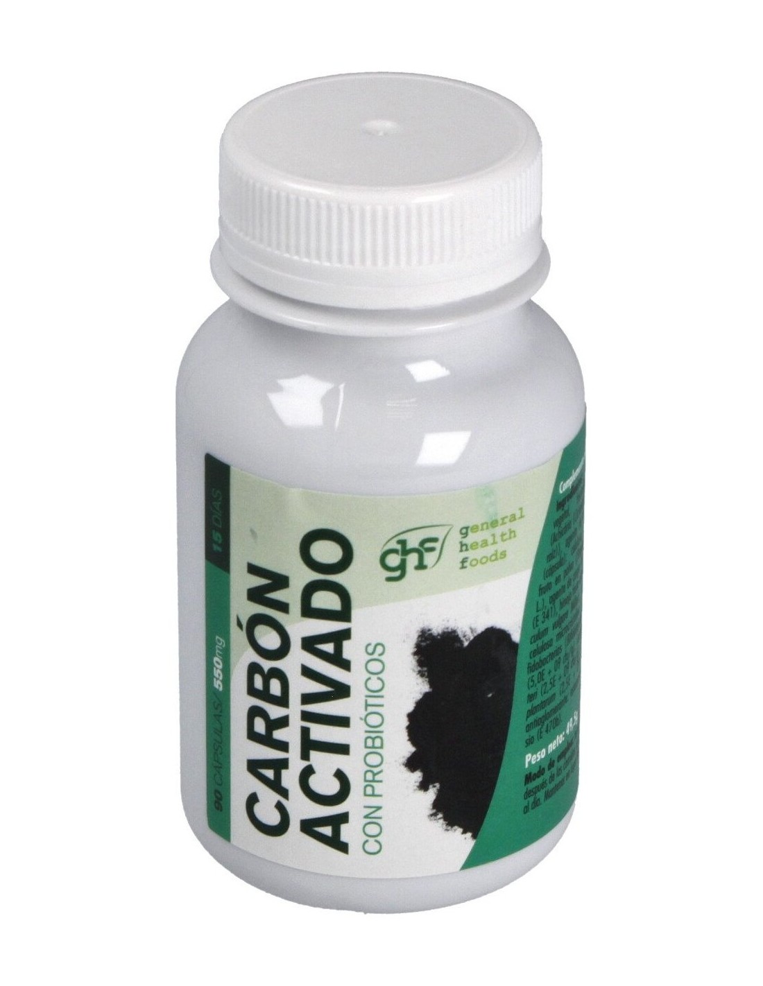 GHF Carbón Vegetal Probiótico 550mg son unas cápsulas ideales para mejorar tu tránsito intestinal y depurar tu organismo de toxinas perjudiciales. La fórmula de este producto ha sido enriquecida con bifidobacterias o probióticos """"buenos"""" que colonizarán tu intestino y así mantendrán en buen estado la salud de tu estómago.