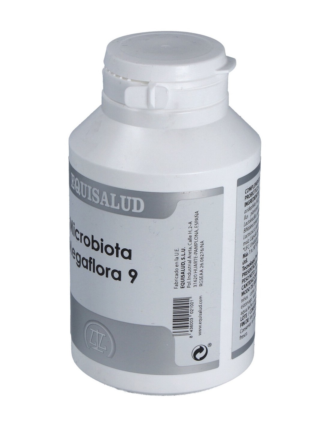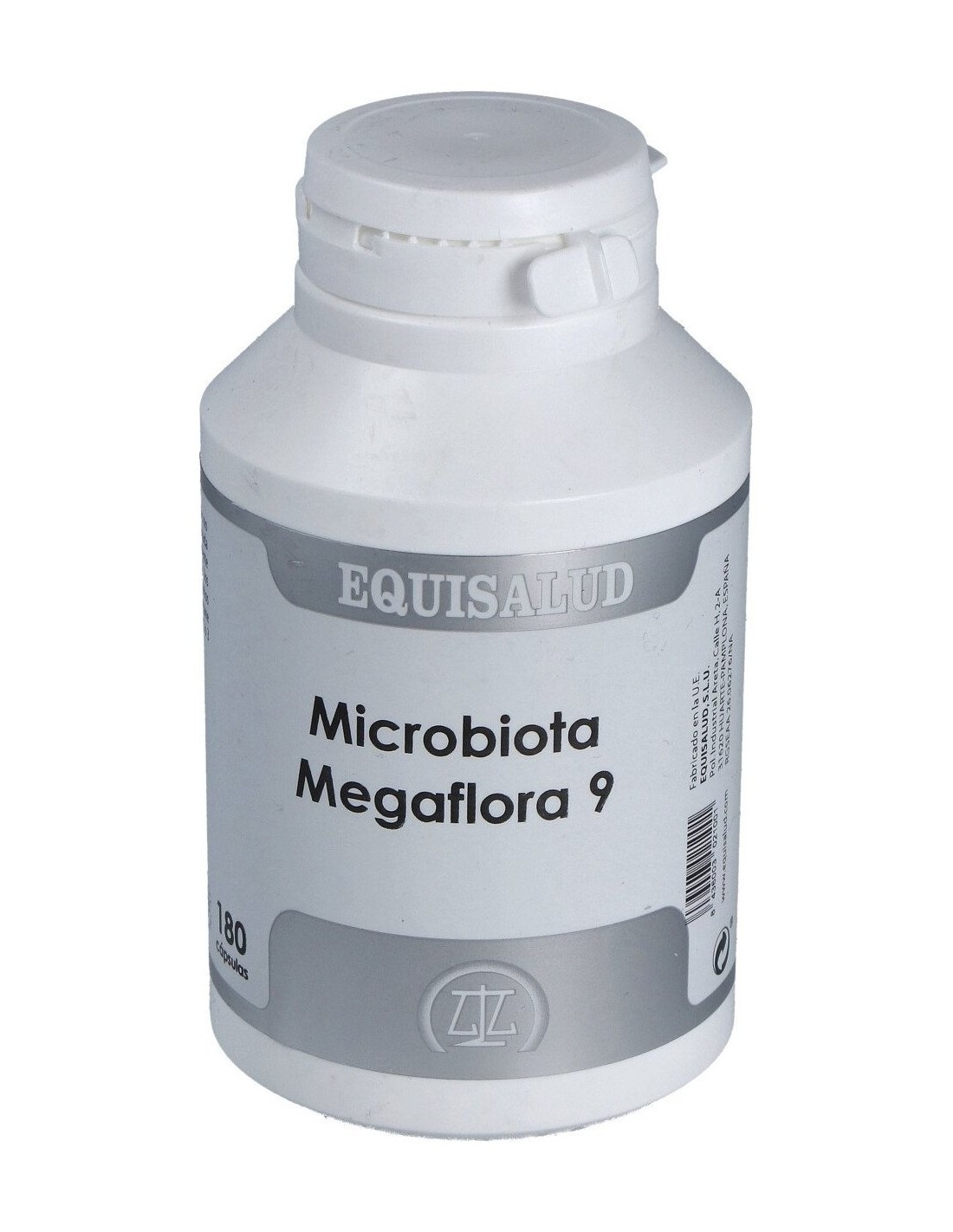 Megaflora 9® ((Bifidobacterium lactis W51, Bifidobacterium lactis W52, Enterococcus faecium W54, Lactobacillus acidophilus W22, Lactobacillus paracasei W20, Lactobacillus plantarum W21, Lactobacillus salivarius W24, Lactococcus lactis W19) 1x109 UFC/g), 990 mg. Excipiente tecnológico: maltodextrina de maíz (agente de carga). Envoltura: agente de recubrimiento (hidroxipropilmetilcelulosa) y gelificante (goma gellan).