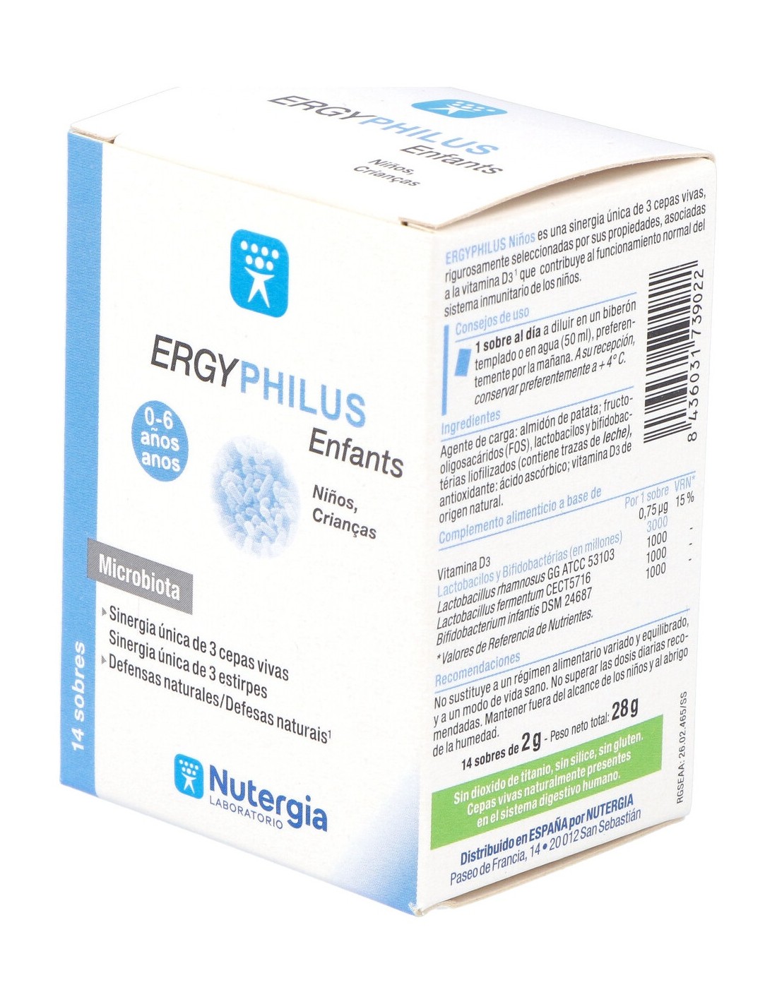 Favorece la resistencia del organismo gracias al Lactobacillus rhamnosus GG, así como el mantenimiento del equilibrio de la flora intestinal gracias al Bifidobacterium infantis.