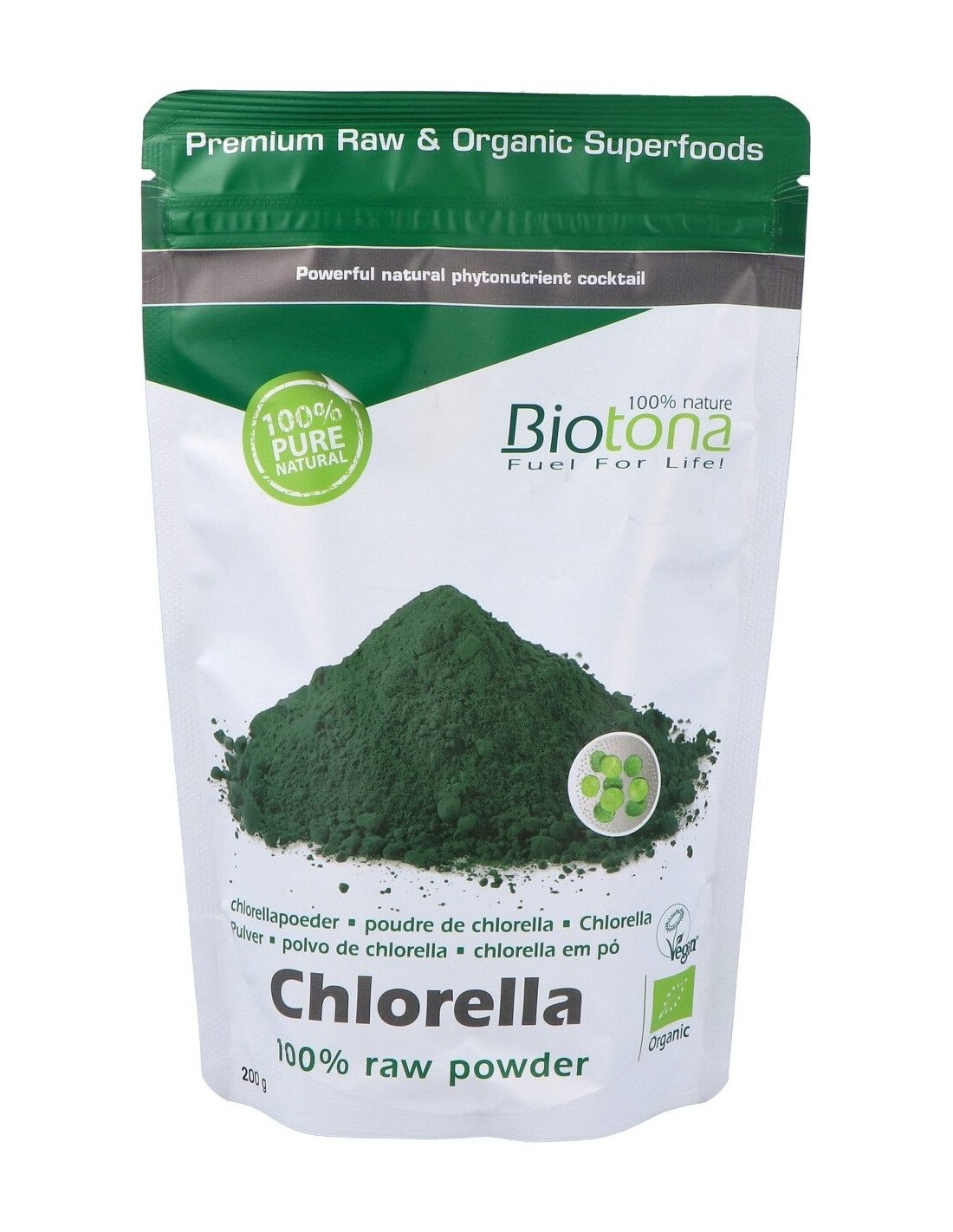 Biotona Chlorella en Polvo Raw se produce a base de algas 100% biológicas, cultivadas al aire libre y con sol intenso. Después de recogerlas, estas algas se someten a un proceso de secado superior al normal, lo cual garantiza la conservación de su valor nutricional.