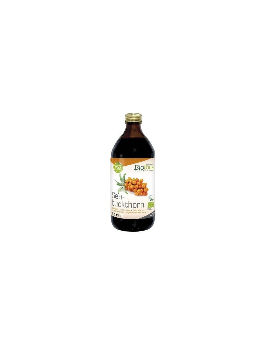 Jugo de espino amarillo* (Hippophae rhamnoides) (100%).