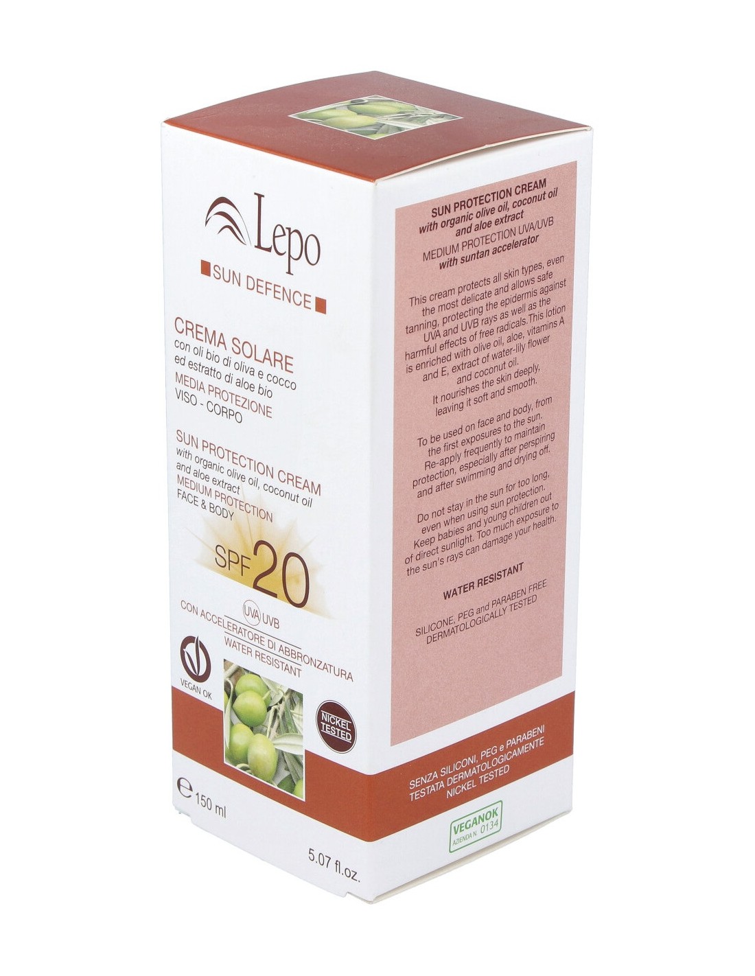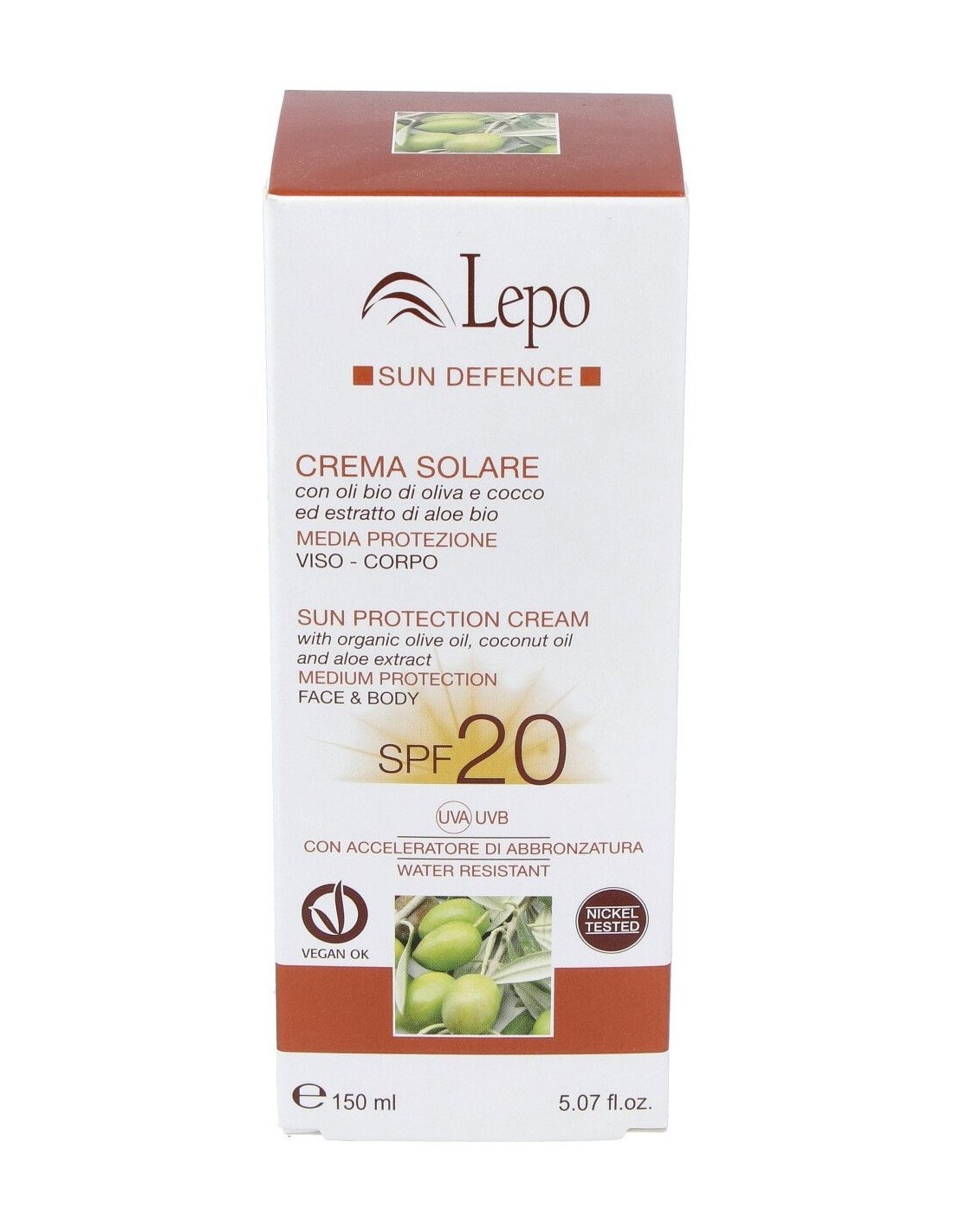 Protector solar para rostro y cuerpo con agente acelerador de bronceado. Formulado a base de aceite de oliva, coco y extracto de aloe. Factor de protección ligero SPF20. Ayuda a proteger la piel de los efectos de los rayos UVA y UVB mientras favorece la acción bronceadora. Su fórmula contribuye a neutralizar la acción de los radicales libres para retardar el fotoenvejecimiento. Composición sin ingredientes de origen animal, sin parabenos y sin silicona. Contiene ingredientes de cultivo ecológico con propiedades hidratantes y emolientes. Apto para todo tipo de piel.