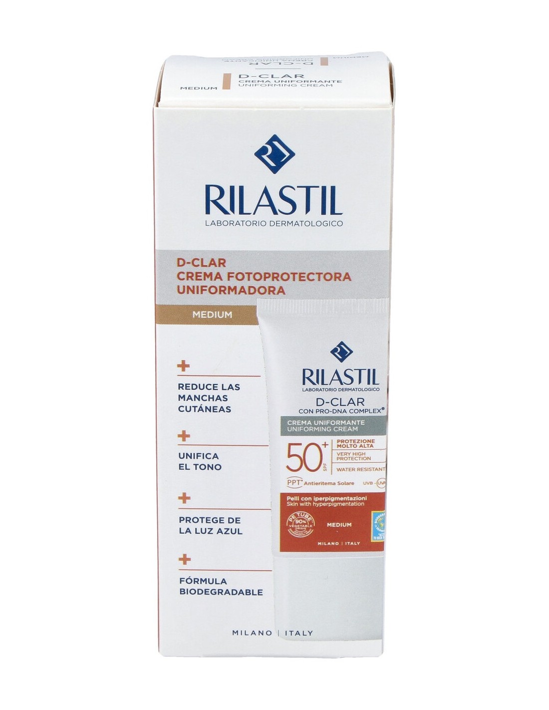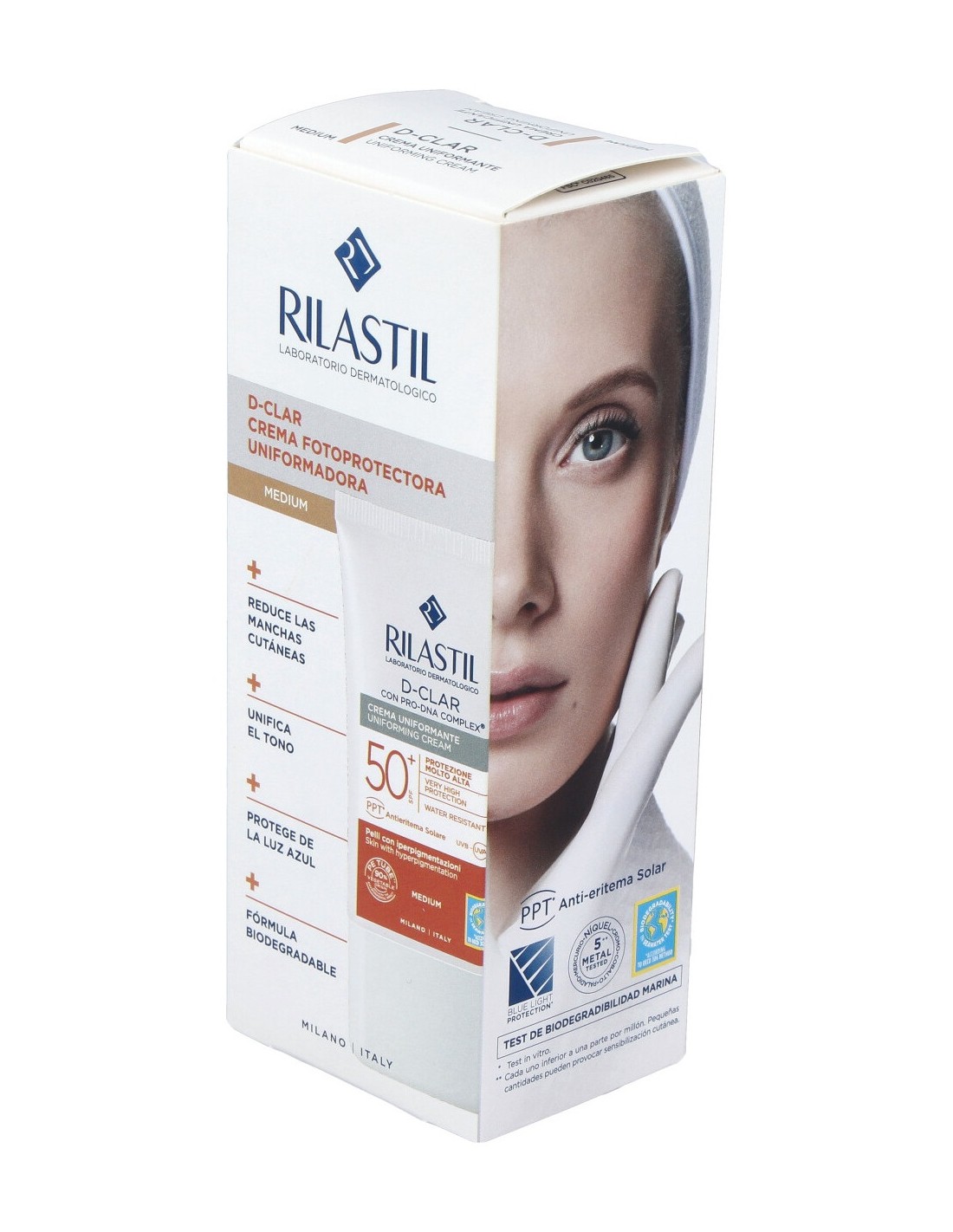 Crema de protección solar de uso diario que ofrece un factor de protección de SPF50 y una protección fotoestable UVB y UVA. Está especialmente ideada para ayudar a prevenir las manchas faciales, mientras que a su vez proporciona al rostro un tono medio para ofrecer una tez uniforme, ayudando a camuflar la hiperpigmentación.