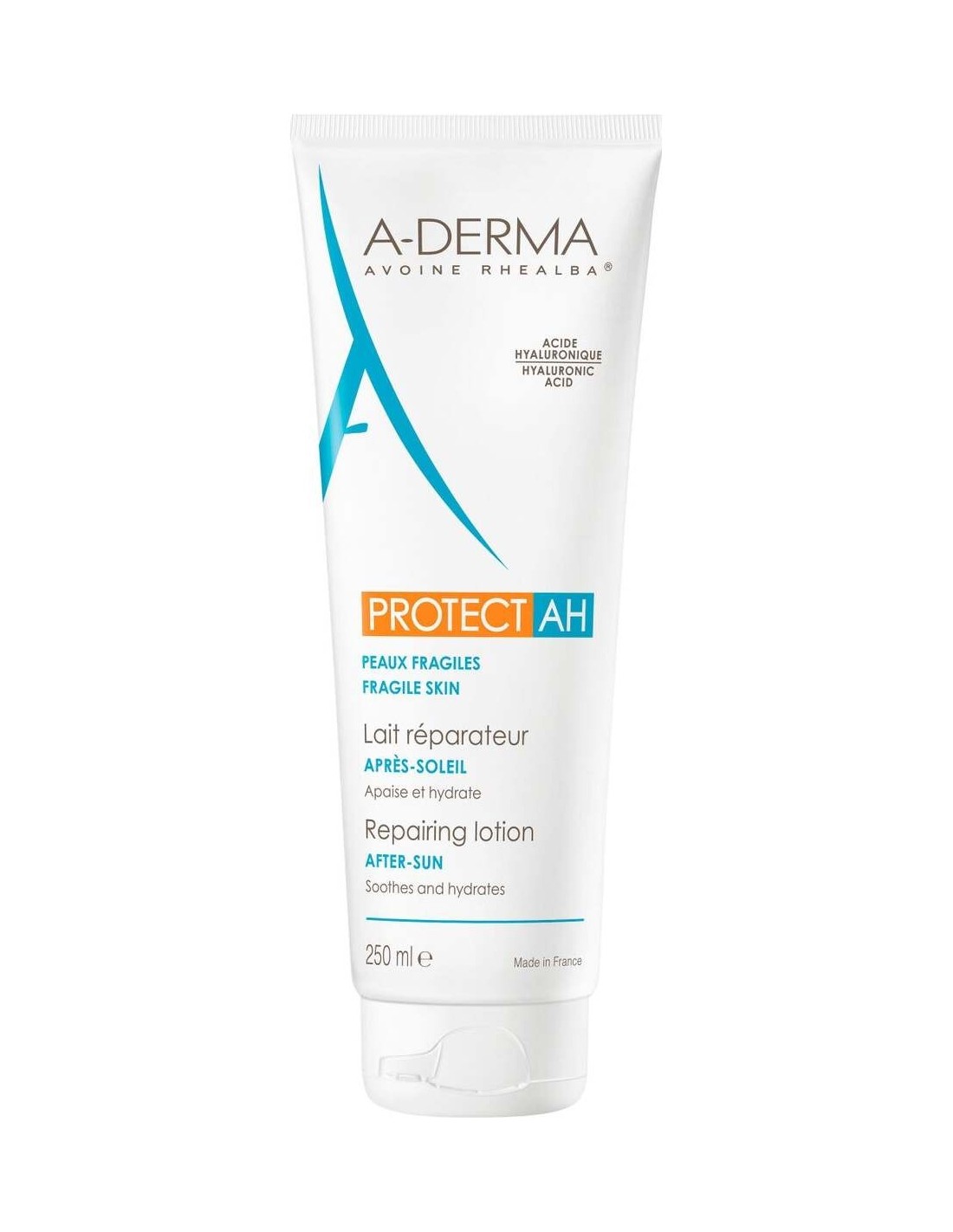 A-derma after sun leche reparadora contribuye a la reparación de la piel tras la exposición solar gracias a su fórmula con ácido hialurónico. Además, aporta hidratación y alivio. Está indicada para todo tipo de piel.