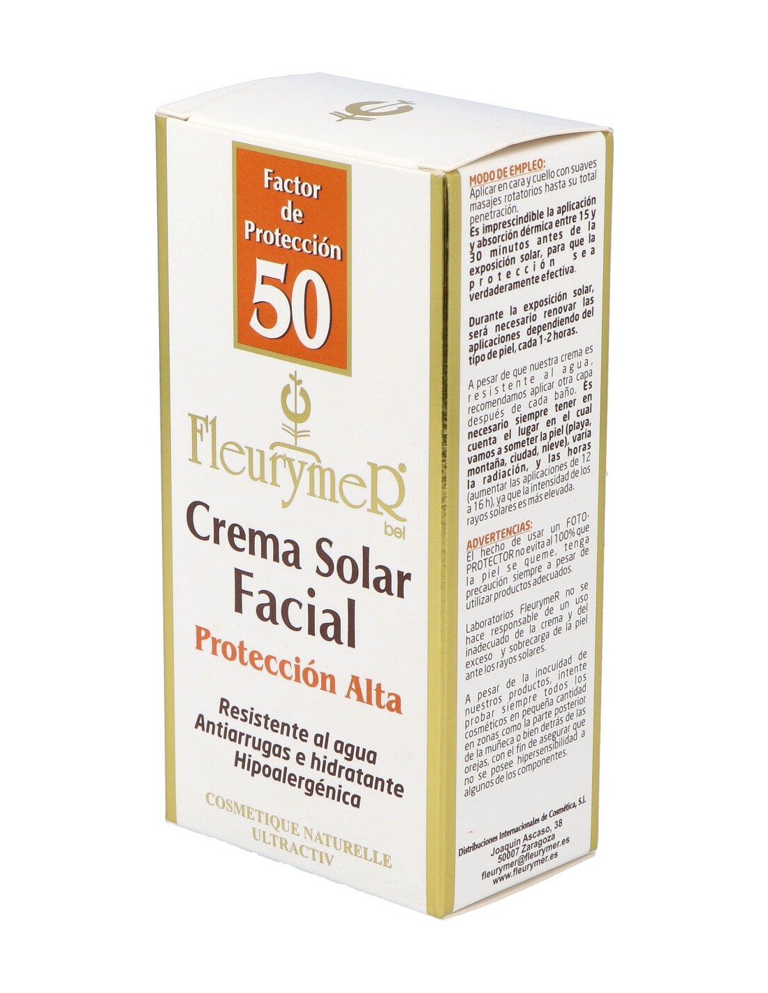 Fleurymer Crema Solar Facial SPF50 80ml es una cema solar para rostro de muy alta protección solar SPF50 y con protección de rayos solares U.V.A., U.V.B., U.V.C. e Infrarrojos.