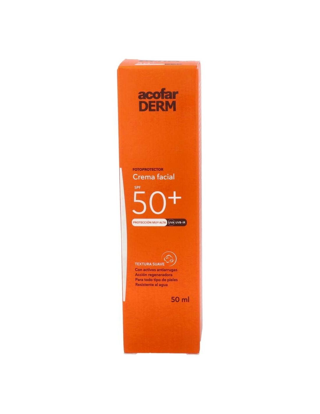 Acofarderm crema solar SPF50+ es un protector solar facial muy alto. Protege la piel de las radiaciones solares, especialmente de las UVA. Gracias a sus propiedades previene la máscara del embarazo y la fotosensibilidad provocada por los medicamentos. Además la piel está protegida de las quemaduras solares, las reacciones de la piel y del daño celular.
