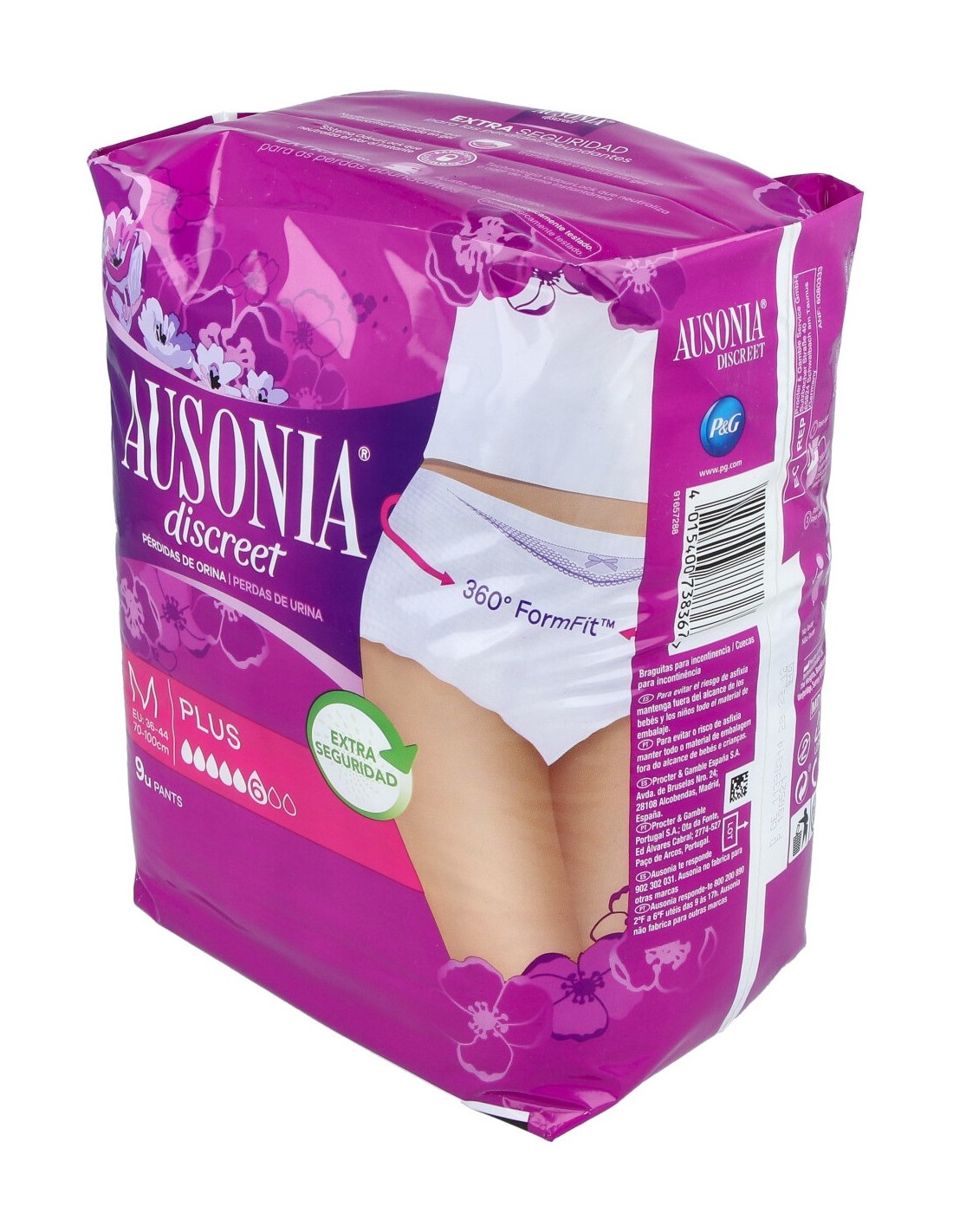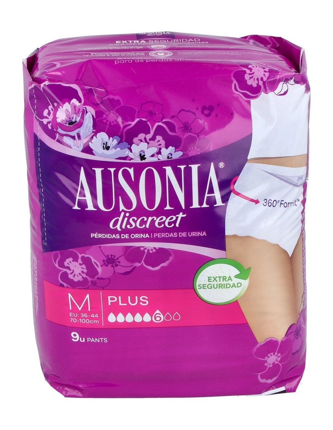 - Ajuste perfecto: Su diseño discreto y su ajuste perfecto hacen que las compresas Ausonia discreet pants plus t/m sean adecuadas para usar bajo la ropa sin que se noten, brindándote la confianza y comodidad necesarias para llevar a cabo tus actividades diarias sin preocupaciones.
