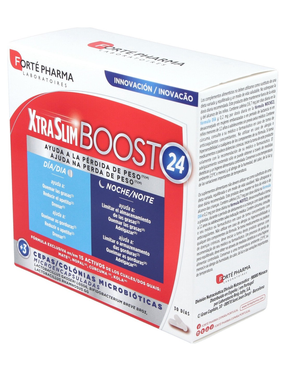 Forte Pharma XtraSlim Boost 24h 120caps es un complemento alimenticio que ayuda a reducir la absorción de grasa y a controlar el peso.
