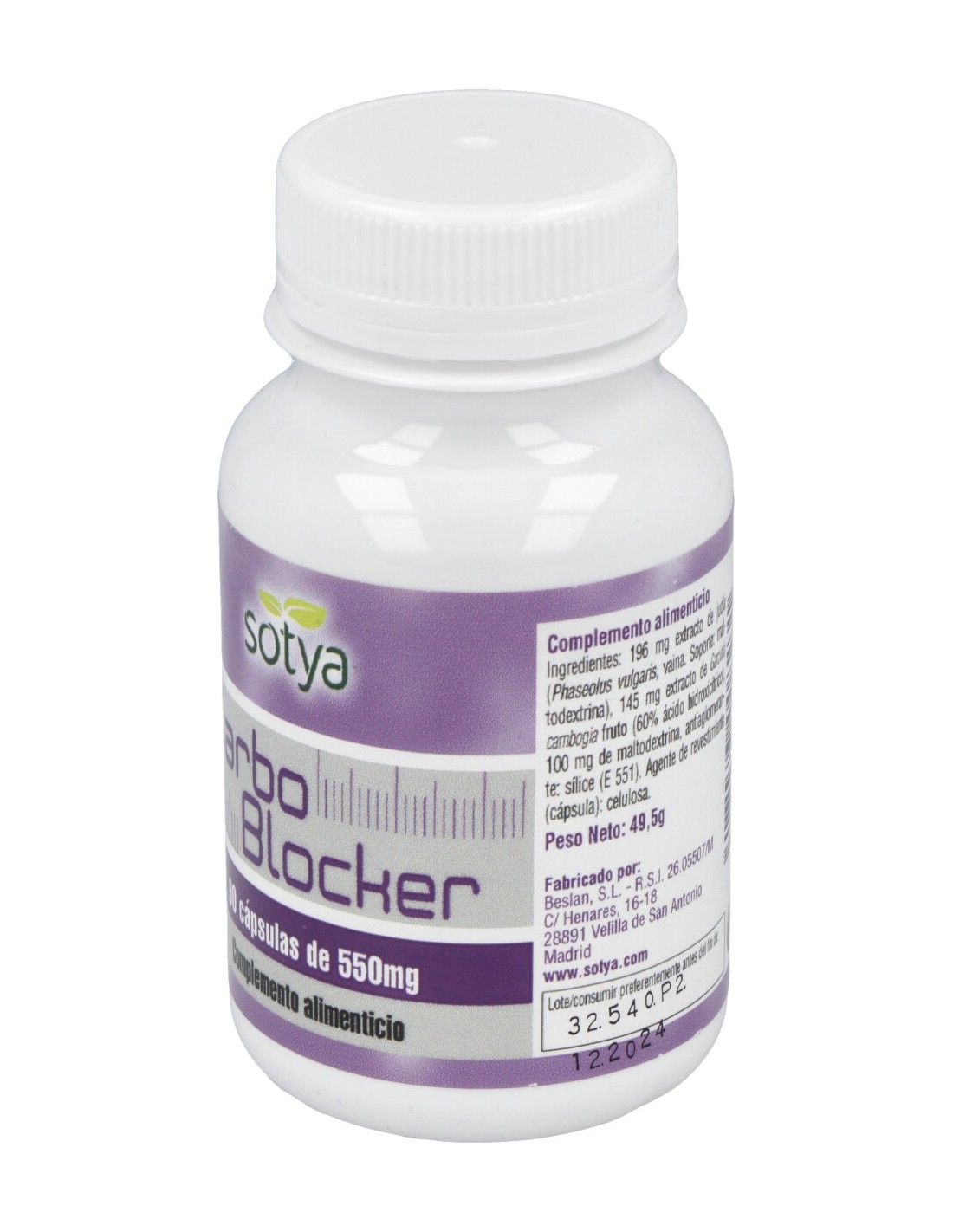 Sotya Carbo Blocker 550mg es un complemento rico en estas dos plantas: Garcinia cambogia y Phaseolus vulgaris. Sus principios activos, los ácidos hidroxicítricos (A.H.C.), presentes en la piel, actúan inhibiendo la enzima responsable de la conversión de los azúcares en grasas, principalmente triglicéridos y lipoproteínas “malas” o de baja densidad (LDL).