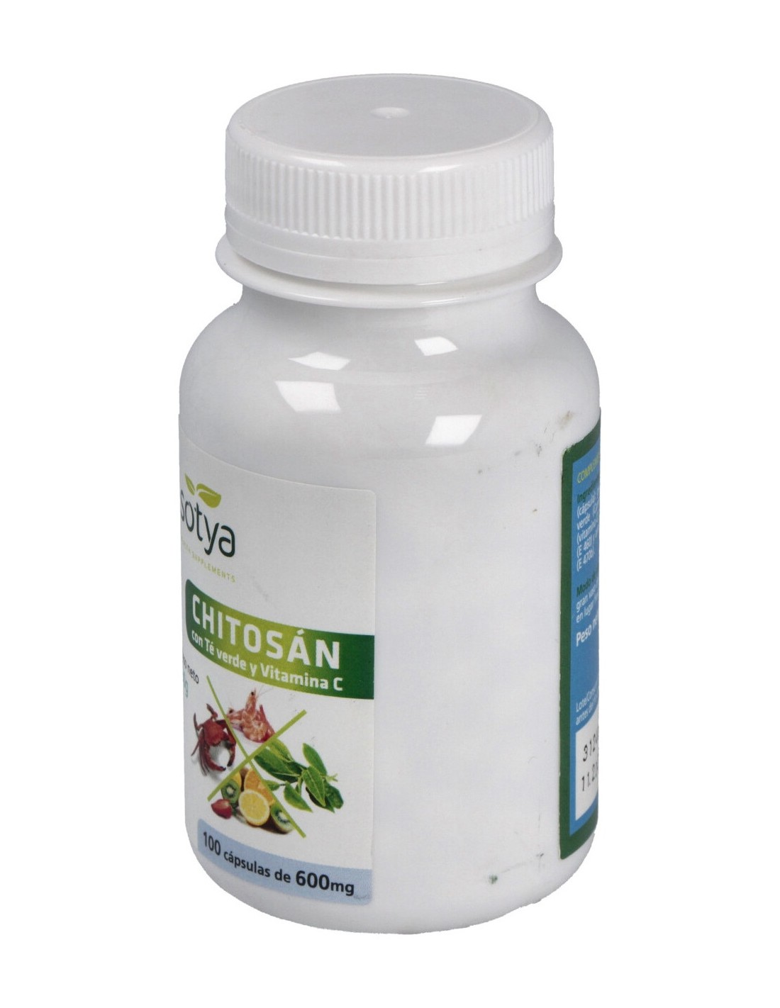 Sotya Chitosán + Té Verde + Vitamina C 600mg es un complemento alimenticio que combina los beneficios de 3 activos naturales: el chitosán, el té verde y la vitamina C. Este complemento es ideal si estás siguiendo una dieta de adelgazamiento y necesitas controlar el consumo de grasas.