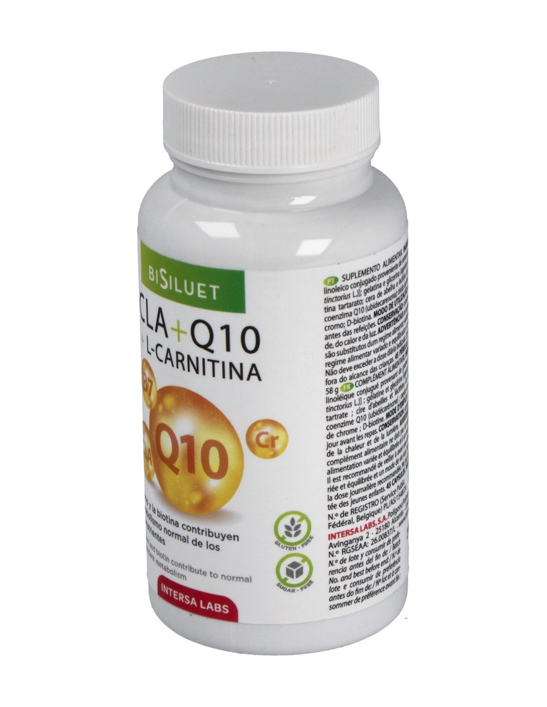 Excipientes: lecitina de soja (emulsificante), gliceril monoestearato (emulsificante). En cápsulas de gelatina-glicerina.