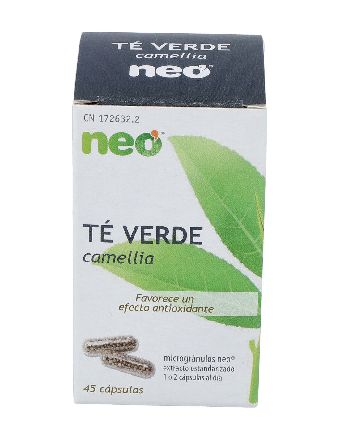 Extracto seco de hojas de té verde (Camellia sinensis (L.) Kuntze) estandarizado al 90% en polifenoles 200 mg, agente de carga (celulosa), envoltura vegetal (pululano), edulcorante (xilitol), transportador (goma laca), antiagregante (talco).