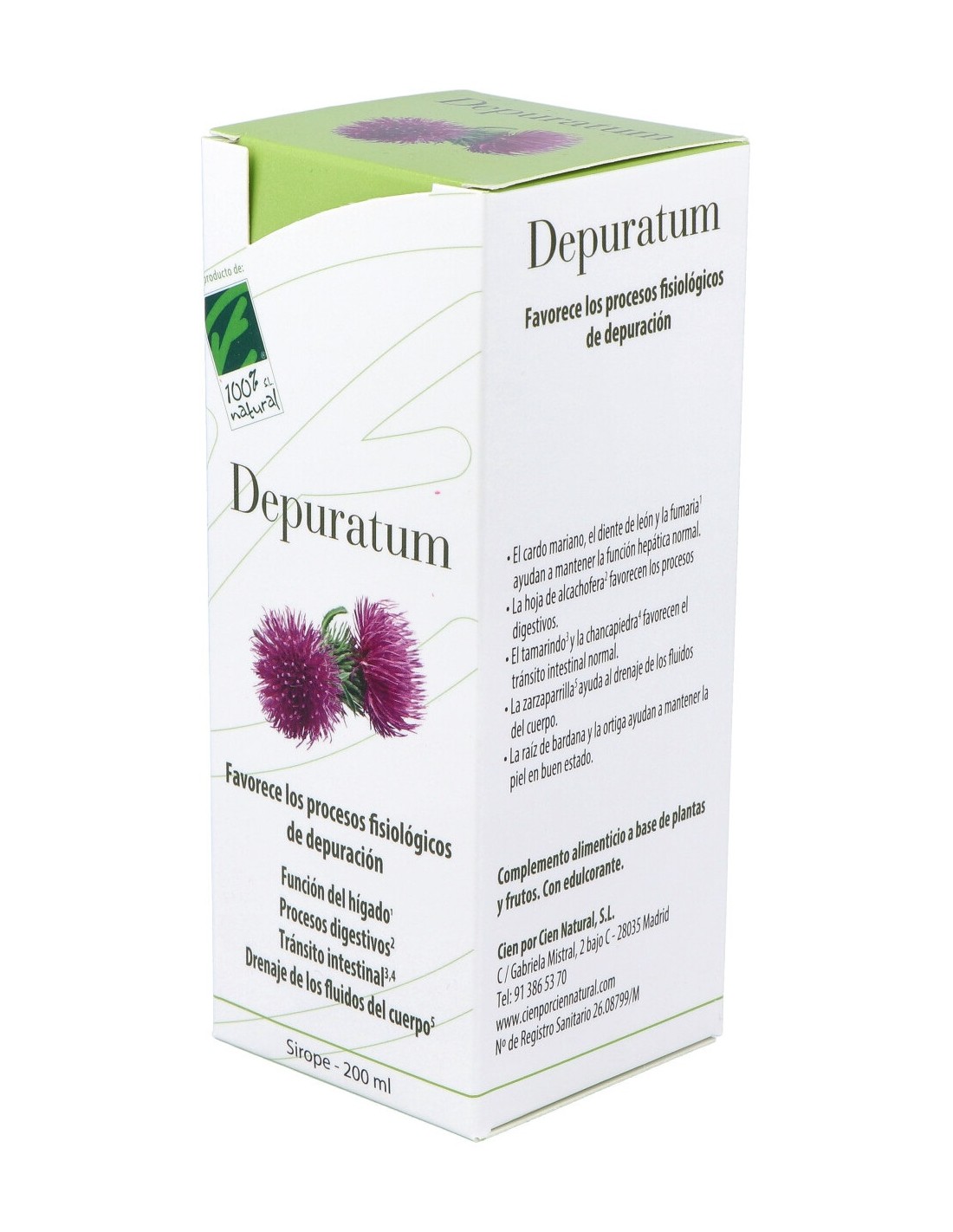 Complemento alimenticio en forma de sirope compuesto por una selección de extractos estandarizados de plantas de alta calidad que aporta una ayuda efectiva para la depuración fisiológica del organismo.DEPURATUM 200ml. de CIEN POR CIEN NATURAL