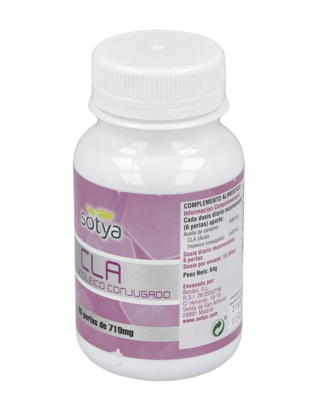 Sotya CLA 710mg son unas perlas que te ayudarán a disminuir la cantidad de grasa acumulada en tu organismo mediante su mayor metabolización. Los resultados de Sotya CLA se potencian si sigues una dieta hipocalórica acompañada de ejercicio físico continuado.