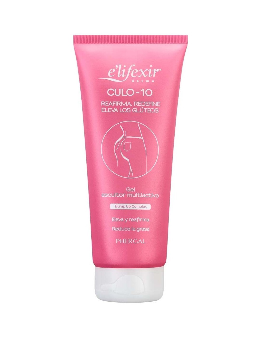 El gel escultor multiactivo Culo-10 de E'lifexir® contiene glaucina, que eleva los glúteos y reduce las acumulaciones de grasa en la zona; Venotonic Plant Complex, un complejo exclusivo que ayuda a que la piel se vuelve más suave y luminosa al estimular la microcirculación, y un complejo anti-estrías que reduce la profundidad de las mismas y estimula la producción de colágeno.