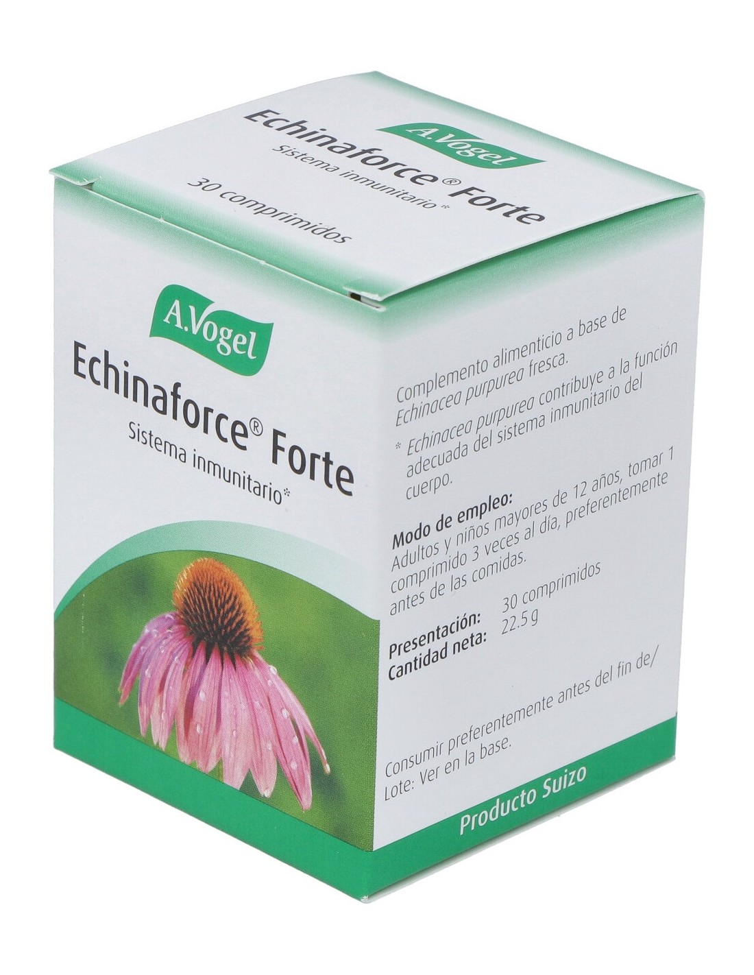 A. Vogel Echinaforce® Forte 30comp es un complemento dietético con una alta concentración de equinácea. Indicado para reducir las infecciones en las vías respiratorias, afecciones catarrales, resfriados o rinofaringitis, ayuda a fortalecer el sistema inmunitario, logrando una mayor protección ante los agentes externos, previniendo la entrada de virus en el organismo y acelerando el proceso de curación y recuperación.