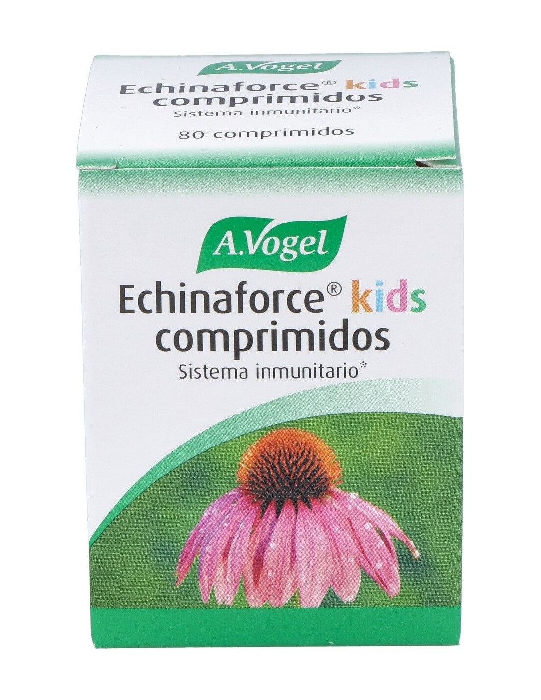 Extracto de equinácea (Echinacea purpurea)* parte aérea y raíz, edulcorante (sorbitol), estabilizante (beta ciclodextrina), antiaglomerantes (sílice coloidal, estearato magnésico), potenciador del sabor (aroma de naranja de origen natural).