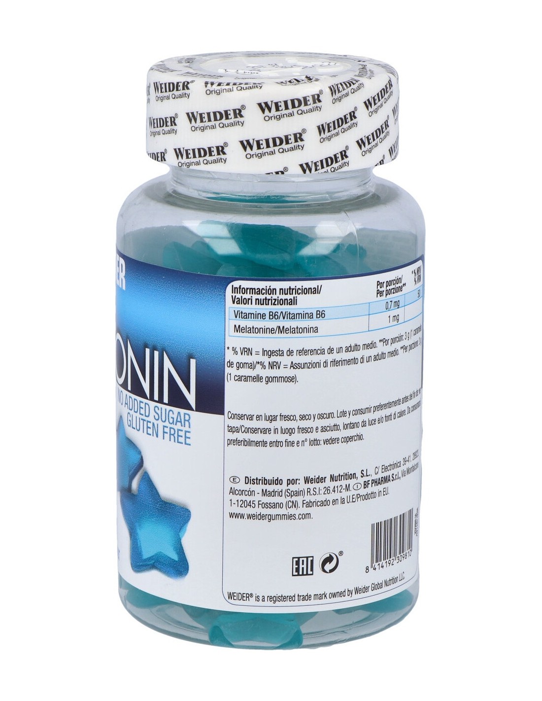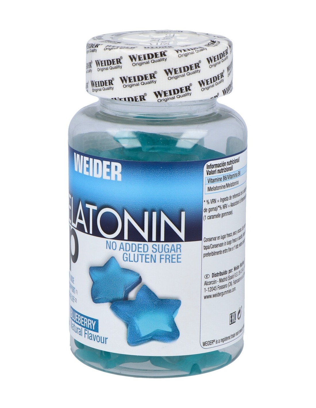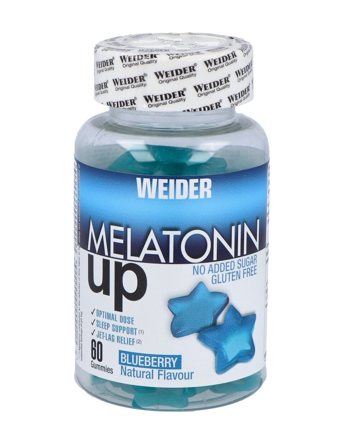 Gummy Up Revolution Melatonin Up de Weider es un gummie rico en melatonina, un componente que favorece el descanso y te ayudará a conciliar rápidamente el sueño. Ideal para viajeros con efectos de jetlag o personas con mucho estrés y nervios acumulados. ¡Con un delicioso sabor a arándano!