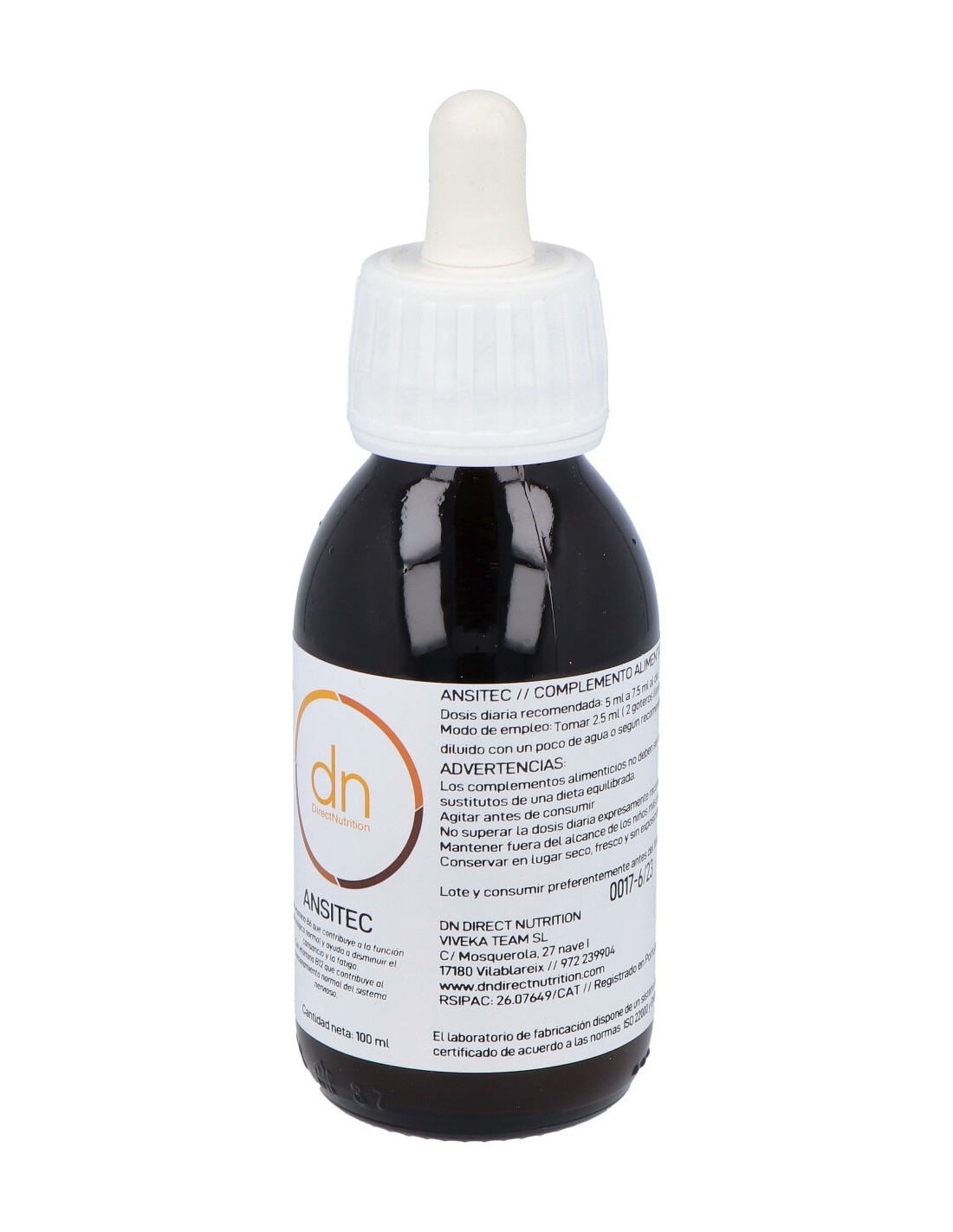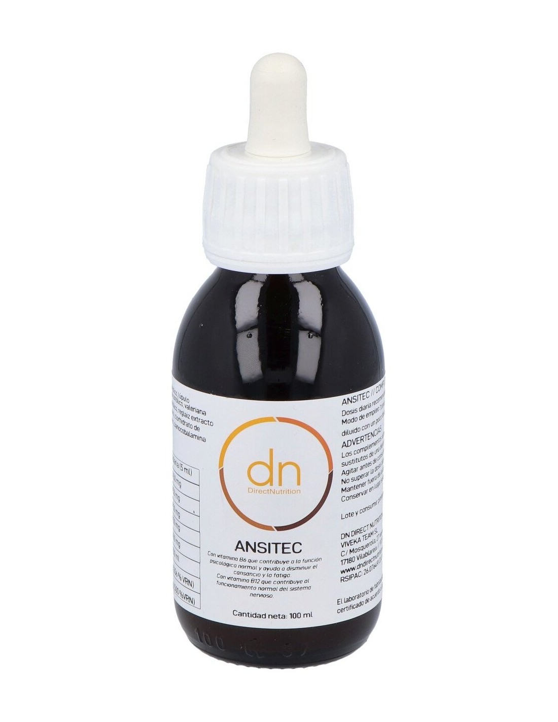 Direct Nutrition Ansitec 100ml es un suplemento de Direct Nutrition para la relajación general del organismo que consta de una mezcla de elementos de origen natural que ayudan a disminuir la sensación de nervios en el cuerpo. Posee extracto de valeriana officinalis que promueve la conciliación del sueño. Además, cuenta con dosis de vitamina B6 y B12 que contribuyen al correcto funcionamiento del sistema nervioso y de las capacidades cognitivas. Está recomendado para usuarios frecuentemente expuestos a entornos estresantes y para regular trastornos del sueño. Se puede usar en jóvenes y adultos. Mantener alejado del alcance de los niños. No ingerir en cantidades excesivas. En caso de observar resultados negativos, se aconseja suspender el uso y consultar con el médico o farmacéutico de confianza.