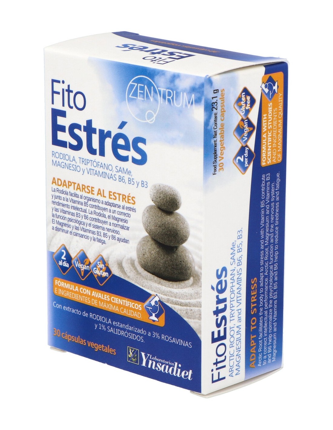 Complemento alimenticio elaborado a base de Rodiola, Triptófano, SAMe, Magnesio y Vitaminas que ayuda a adaptarse al estrés porque su consumo ayuda a un aumento significativo de serotonina (Hormona antiestrés) y un descenso de los niveles de cortisol (hormona del estrés). Apto para veganos.FITOESTRES 30cap. de ZENTRUM