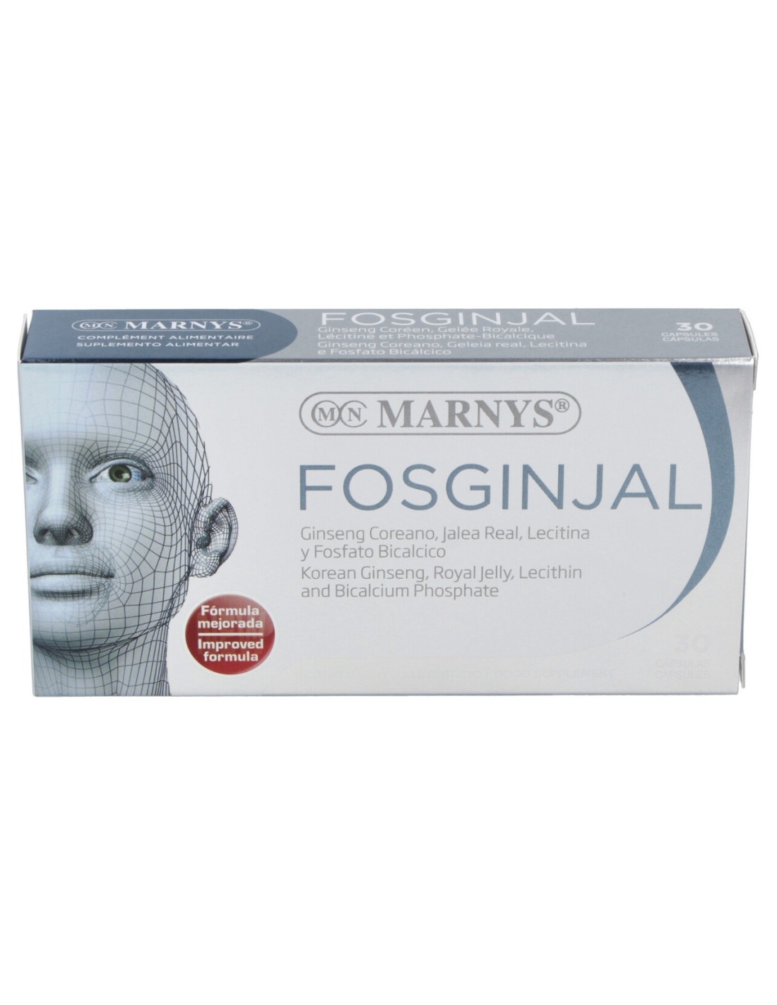 Fosginjal es la combinación de jalea real, ginseng coreano, lecitina de soja y fosfato bicálcico, ofrece nutrientes al cerebro que le permiten funcionar en armonía y facilita la agilidad mental. El ginseng coreano contribuye en promover la vitalidad en la mente y el cuerpo, la alerta mental, la concentración, la memoria y el desempeño cognitivo. La jalea real favorece el metabolismo energético, el fosfato beneficia la normal neurotransmisión y el fósforo contribuye en el funcionamiento de las membranas celulares del cuerpo.
