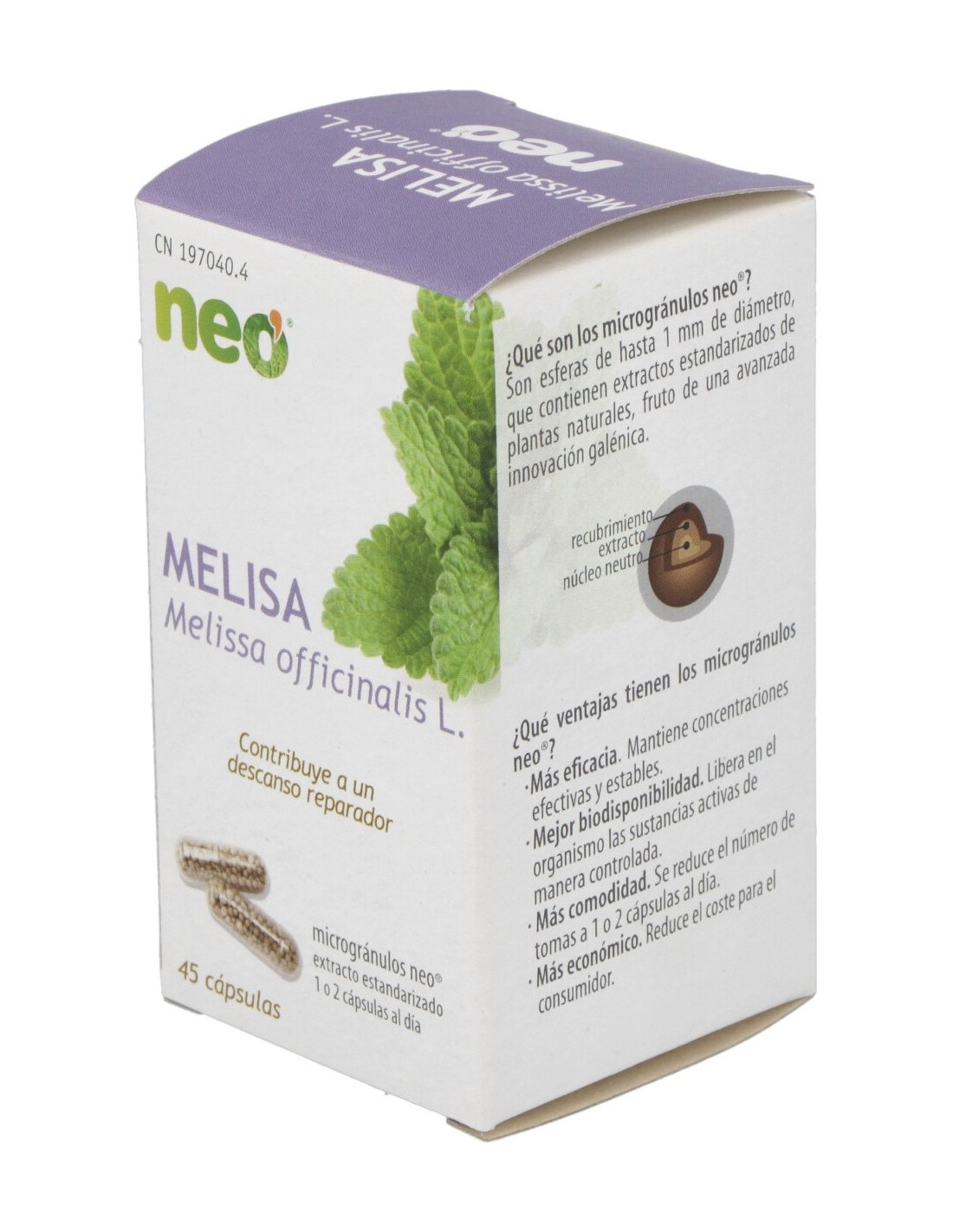 Extracto estandarizado de melisa (Melissa officinalis) ... 200 mg.
