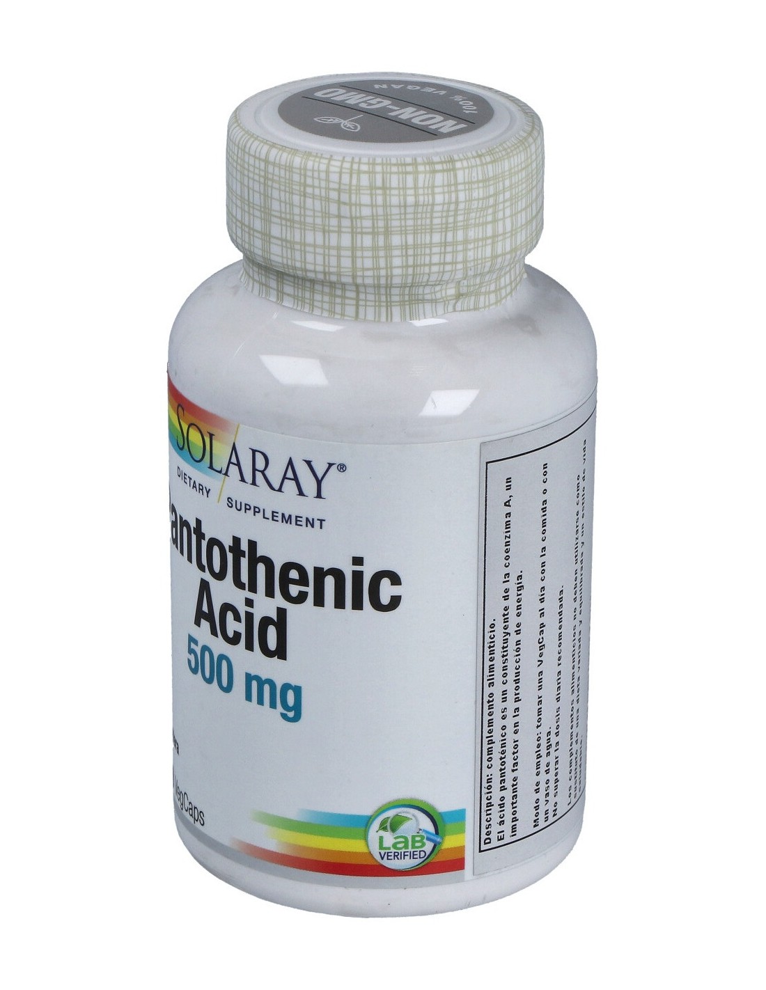 Pantothenic Acid es un complemento alimenticio de la marca Solaray que ayuda a aumentar las defensas del organismo. Recomendado para deportistas y personas que necesitan un refuerzo de energía, incluso para aquellas con debilidad o mareos constantes.