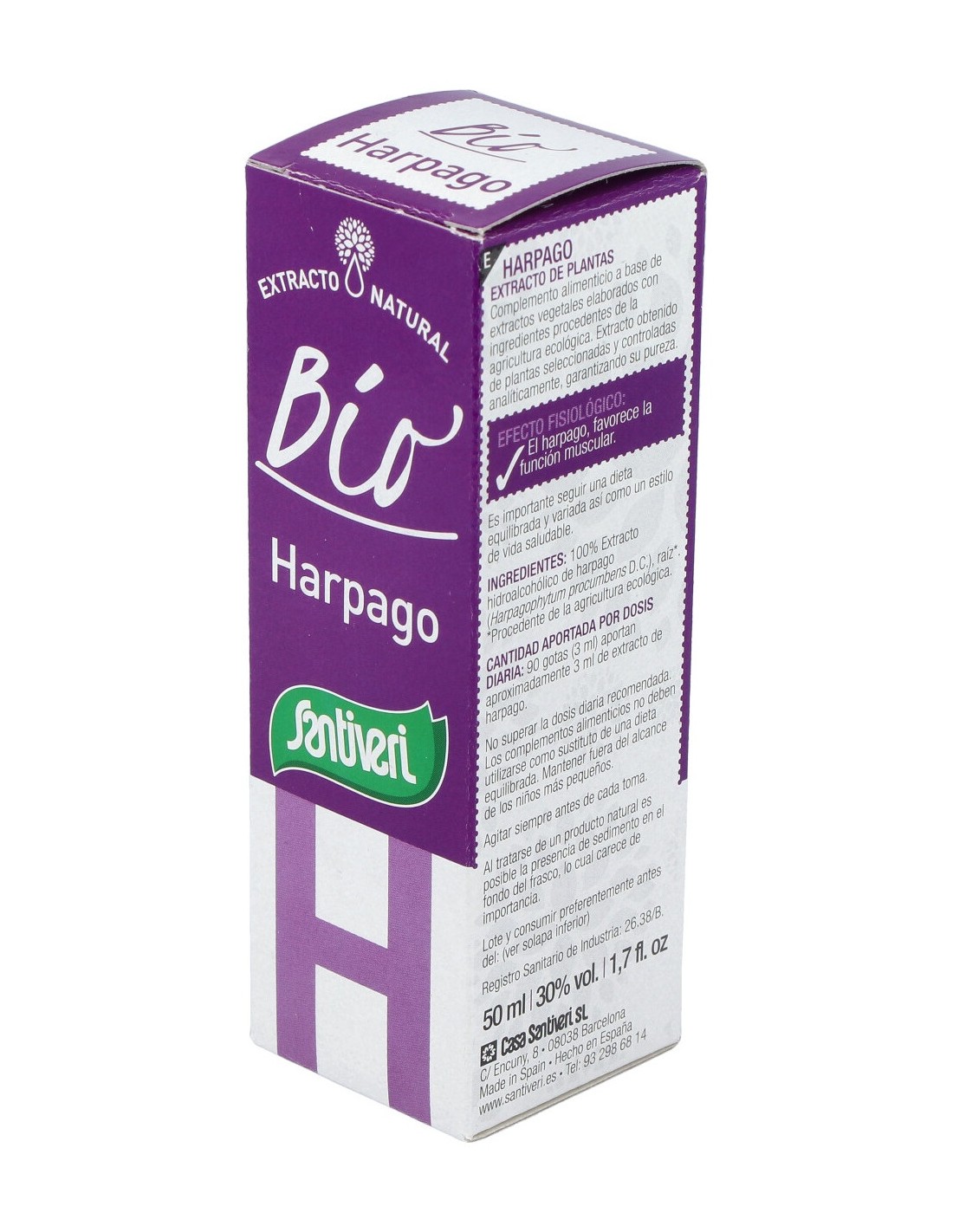 Complemento alimenticio en formato líquido, elaborado a base de extracto hidroalcohólico de raíz de harpago procedente de cultivos ecológicos, que está indicado para ayudar a desinflamar y aliviar los dolores articulares, musculares y óseos. El harpagofito es una planta originaria del sur de África que contiene harpagosidos, un principio activo con efecto antiinflamatorio.