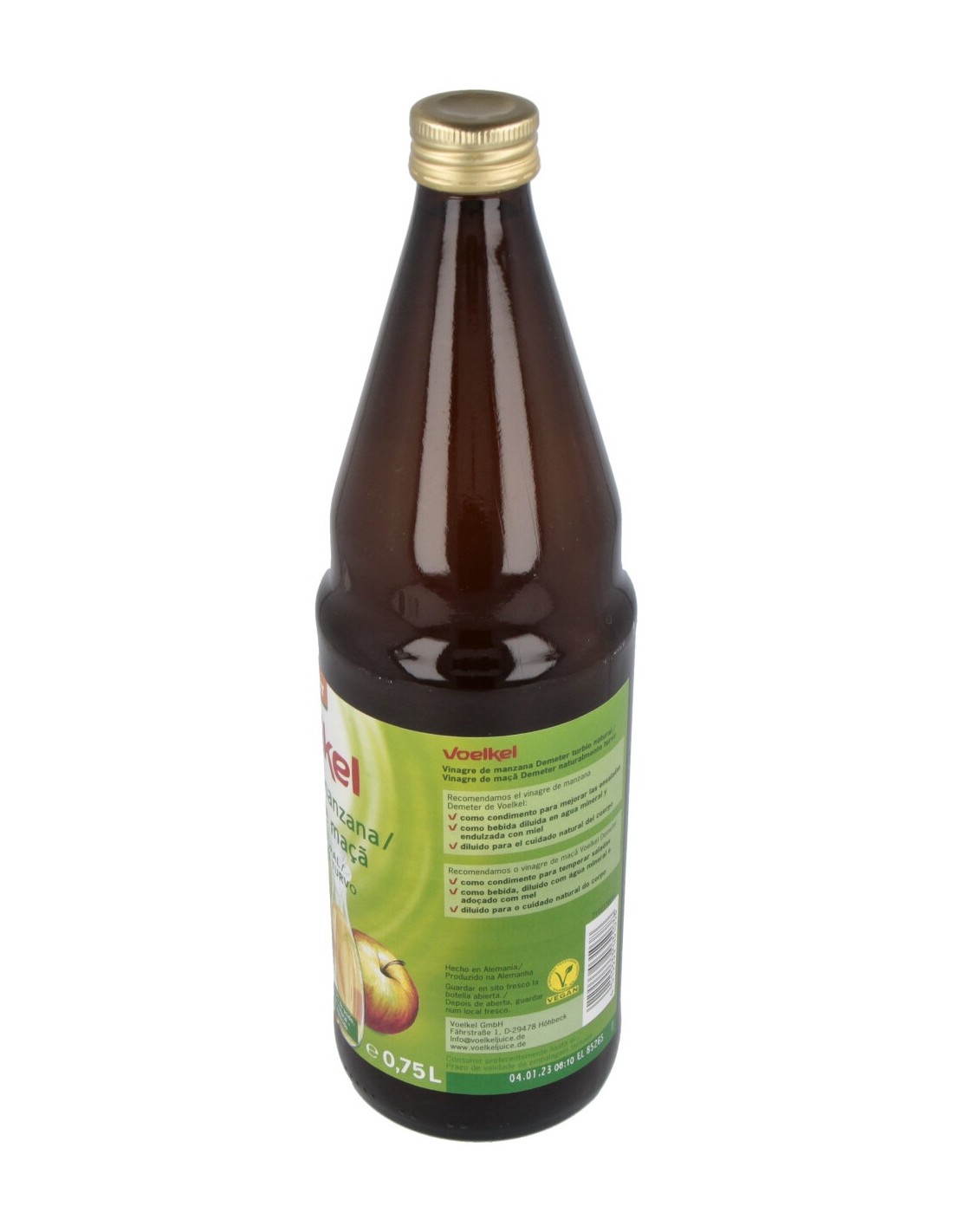 Este vinagre de manzana, naturalmente turbio, se elabora siguiendo el método tradicional: Primero, el zumo natural procedente del prensado de las manzanas es fermentado para convertirlo en vino. Después, se transforma en vinagre de manzana fino y picante. Por último, sin filtrar ni pasteurizar, se envasa cuidadosamente, conservando todas sus propiedades. Ideal para aliñar ensaladas y para el cuidado diario natural del cuerpo. Todos los ingredientes utilizados son libres de organismos genéticamente modificados y proceden de agricultura ecológica.