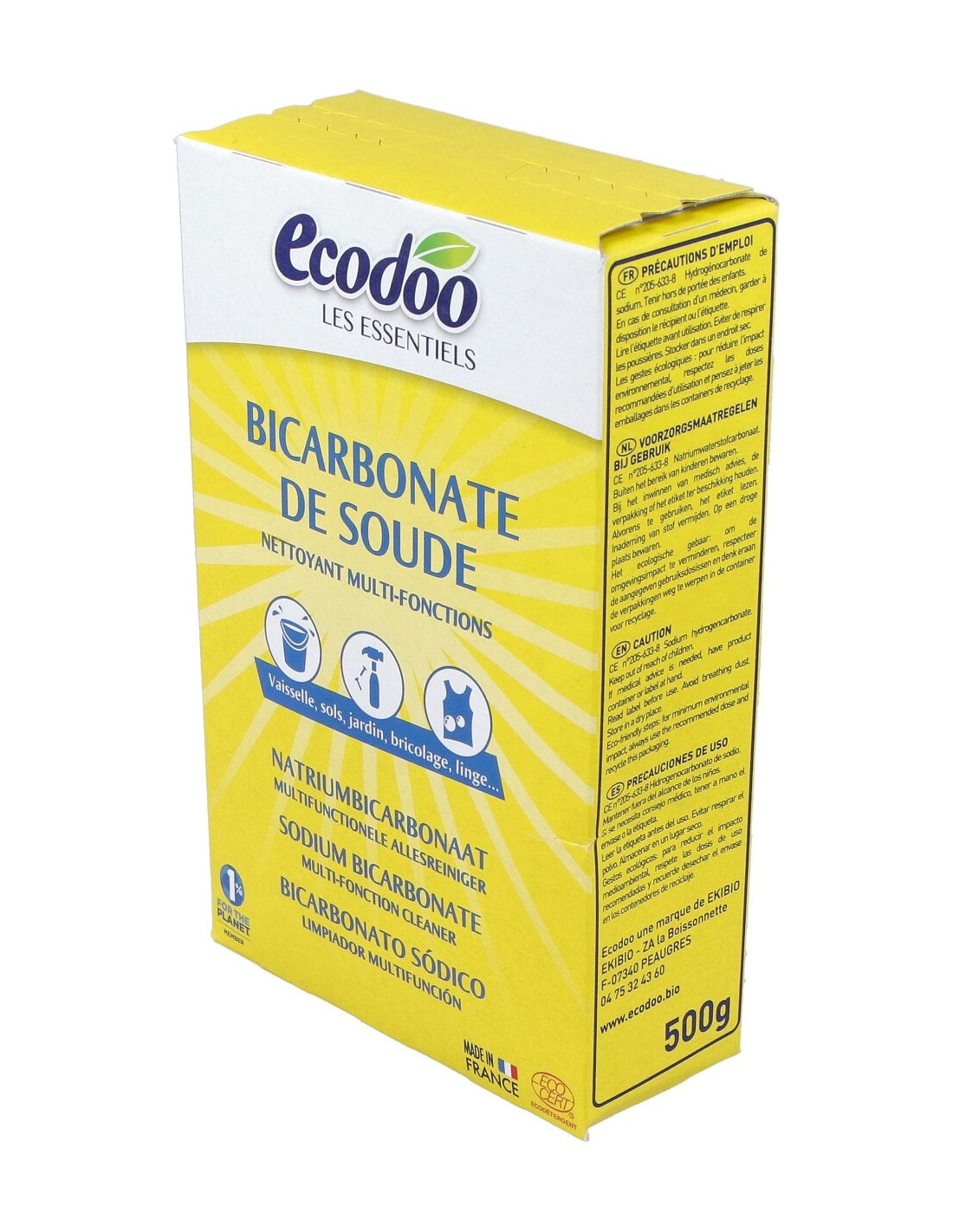 Con certificado EcoCert. Conocido y utilizado desde hace generaciones, limpia azulejos, la cocina, el horno y los platos. Lucha contra los ácaros, desodoriza, lava y suaviza la ropa, y protege la lavadora.