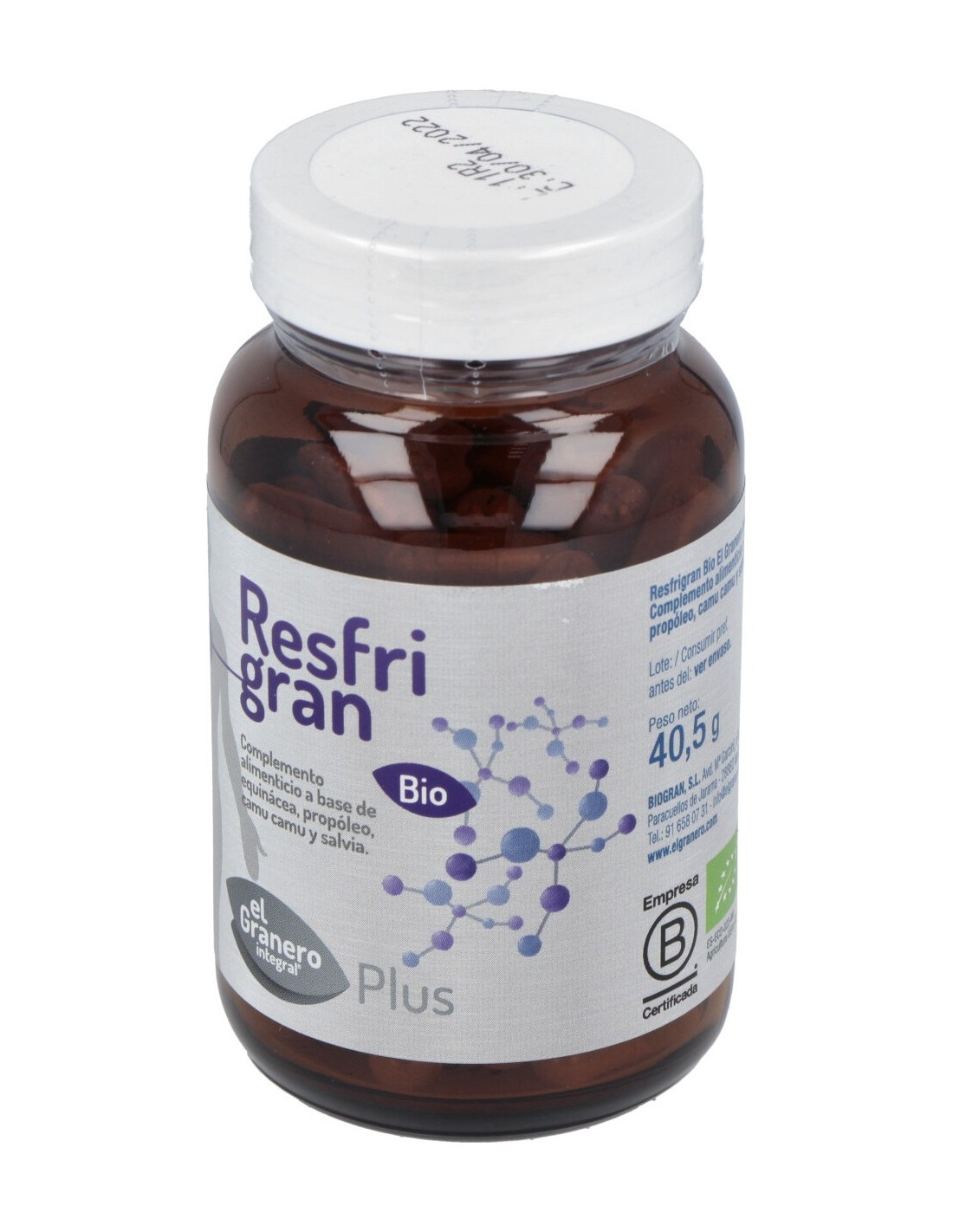 Complemento alimenticio especialmente recomendado para la prevención y el tratamiento de los procesos gripales y catarrales. Contiene camu camu, propóleo, equinácea y salvia, procedente de cultivo ecológico, Favorece el normal funcionamiento del sistema inmune, y ayuda a reducir el cansancio y la fatiga. Ayuda a calmar la tos. Tratamiento complementario de las afecciones recurrentes de las vías respiratorias superiores. Los complementos alimenticios no deben utilizarse como sustitutos de una dieta variada y equilibrada ni un modo de vida sano. Mantener fuera del alcance de los niños más pequeños. No superar la dosis diaria expresamente recomendada. Este producto no pretende diagnosticar, tratar, curar o prevenir ninguna enfermedad.