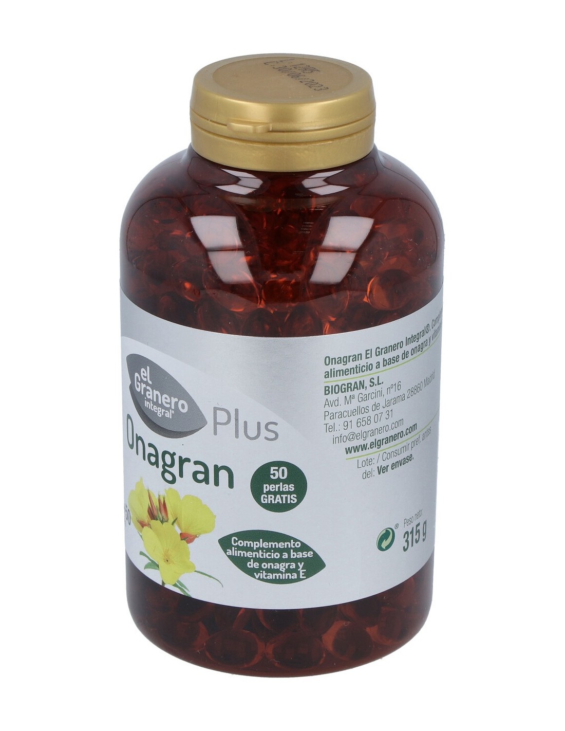 Es un excelente suplemento alimentario formado por semillas de onagra que ayuda especialmente en mujeres, regula la menstruación, menstruaciones dolorosas, síntomas de la menopausia, etc. De las semillas de la onagra, tras una primera presión en frío, se obtiene un escaso y valioso aceite extremadamente rico en ácidos grasos esenciales (AGE). La onagra contiene principalmente ácido linoleico y ácido gamma-linolénico (AGL). Dichos ácidos grasos se denominan esenciales porque nuestro cuerpo no es capaz de producirlos por sí mismo, por lo que necesariamente deben ser incluidos cada día en la alimentación. El aceite de esta planta se utiliza como analgésico durante la menstruación (eficacia, sin efectos secundarios adversos, de la onagra en el tratamiento del síndrome premenstrual).