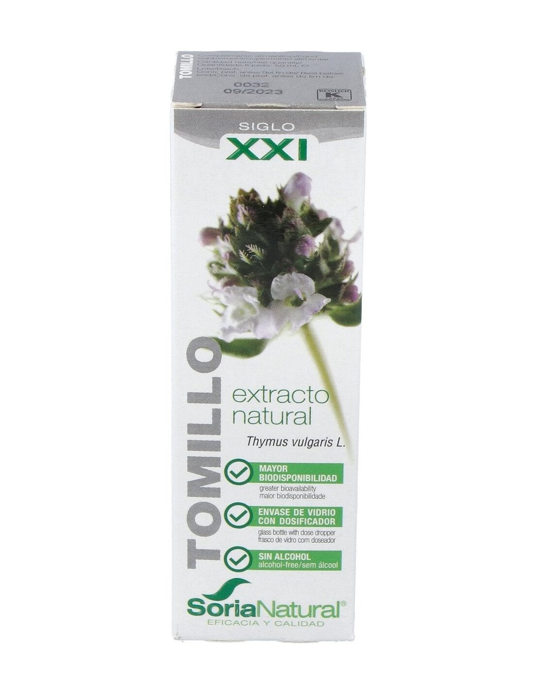 Complemento alimenticio de extracto de tomillo, que actúa como un potente antiséptico: acción bactericida, inhibendo el crecimiento y desarrollo de los gérmenes. El aceite esencial de tomillo contenido en este extracto tiene propiedades antiinfecciosas, es un tónico general del sistema nervioso y circulatorio, antiespasmódico, vermífugo (favorece la eliminación de los gusanos intestinales), diurético (hace orinar) y es muy eficaz contra la tos. Además estimula el hígado y la vesícula biliar y es un activador de las defensas.